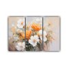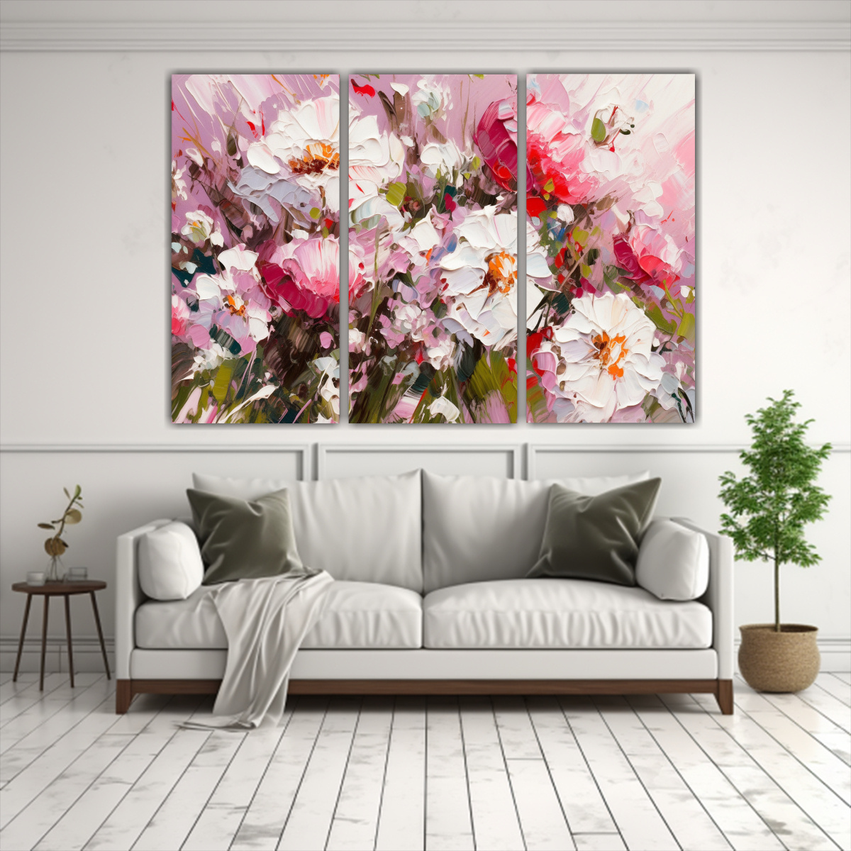 Cuadro De Flores En Lienzo Moderno De Tres Artes Multicolor En Blanco Y Magenta.