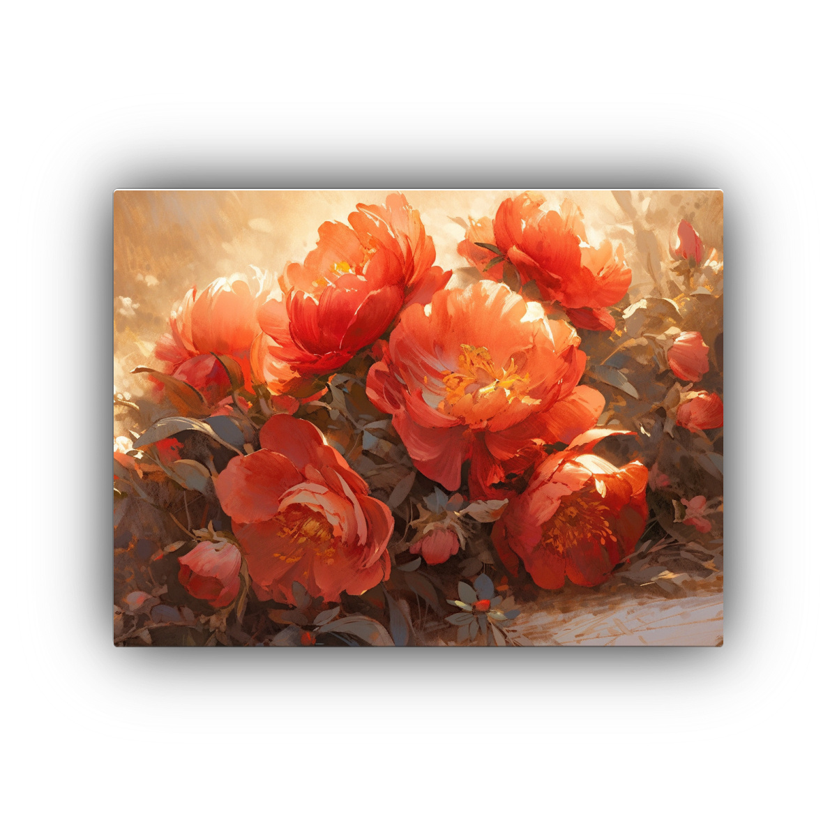 Transforma tu espacio con este hermoso lienzo de flores en tonos rojos y dorados Envíos rápidos y gratuitos en Santiago, y express a regiones Calidad inigualable y precios competitivos
