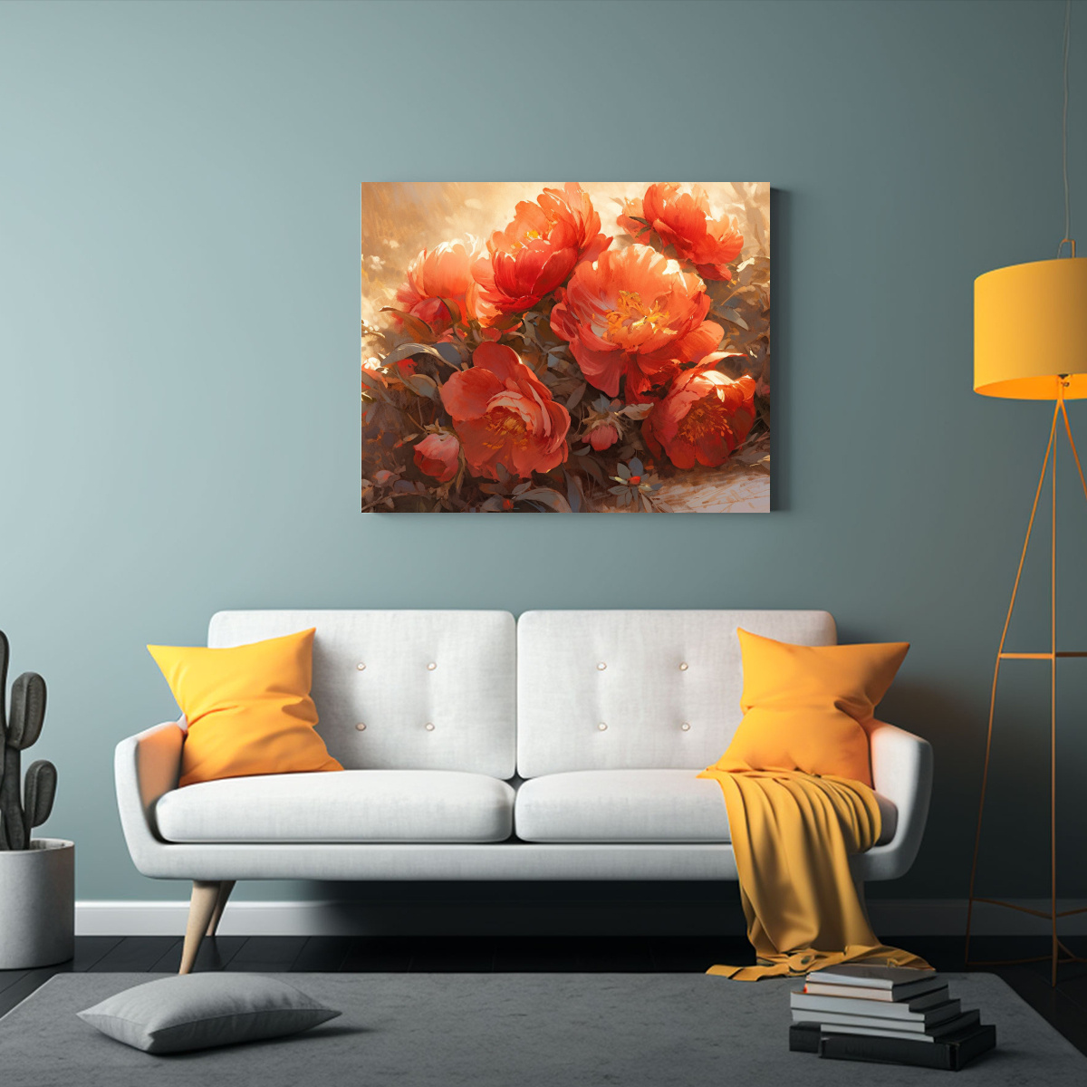 Este cuadro de flores rojas y doradas en lienzo es ideal para realzar la elegancia de tu sala de estar o dormitorio Colócalo sobre una pared clara para que resalten sus colores vibrantes y añadan calidez a tu espacio