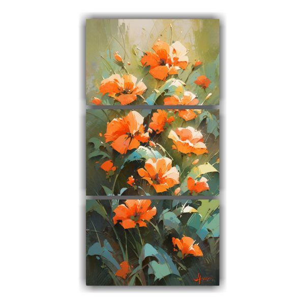 Cuadro De Flores Verde Y Naranja Para Cocina En Lienzo Arte De Pared.