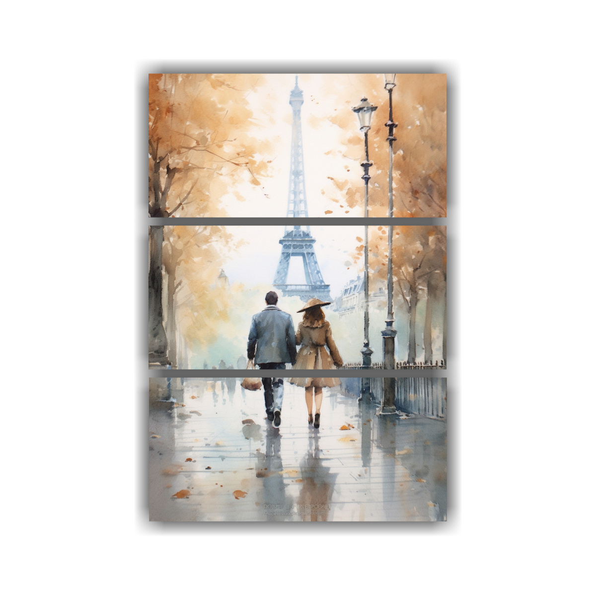 Cuadro De Fotografía Interior: Pareja Joven Caminando Frente A La Torre Eiffel