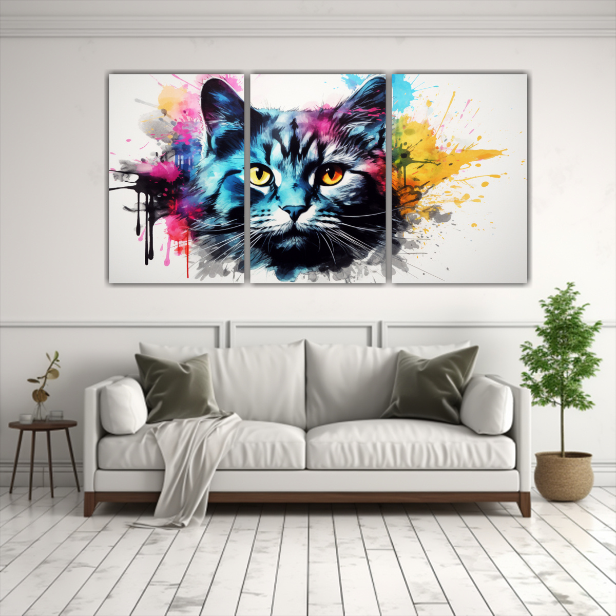 Renueva tus espacios con un toque de frescura y diversión Cuadro de gato colorido estilo acuarela impreso en tela de alta calidad con bastidores de madera Envíos rápidos y gratuitos en Santiago