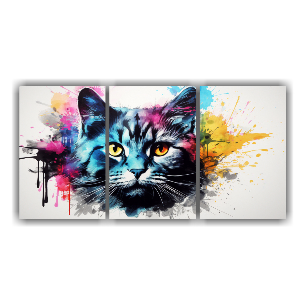 Cuadro De Gato Colorido Estilo Acuarela Set 3 Fotografía En Lienzo 21