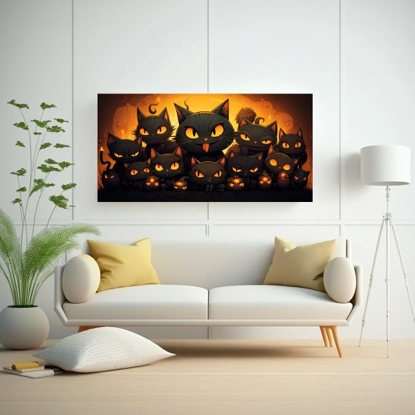 Cuadro De Gatos Negros En Bastidor: Felina Y Luminosa, Muchos Felinos Mirando.
