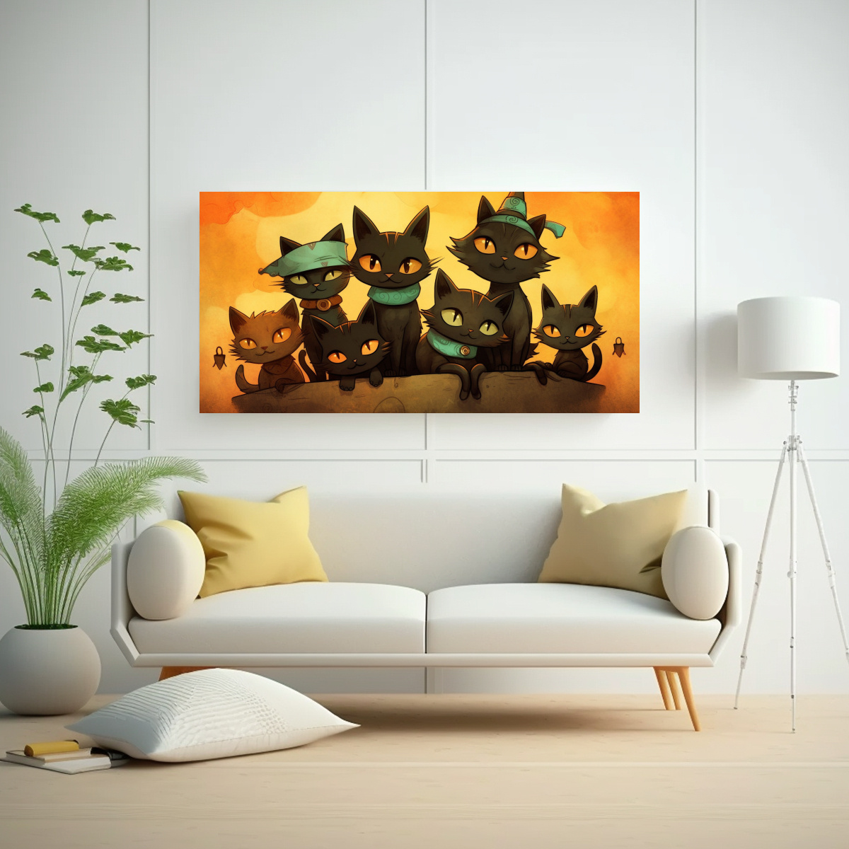 Coloca este cuadro de gatos negros en pila en la pared principal de tu sala de estar para crear un punto focal impactante Combina con muebles en tonos neutros para resaltar los colores vibrantes del cuadro y lograr una decoración moderna y elegante