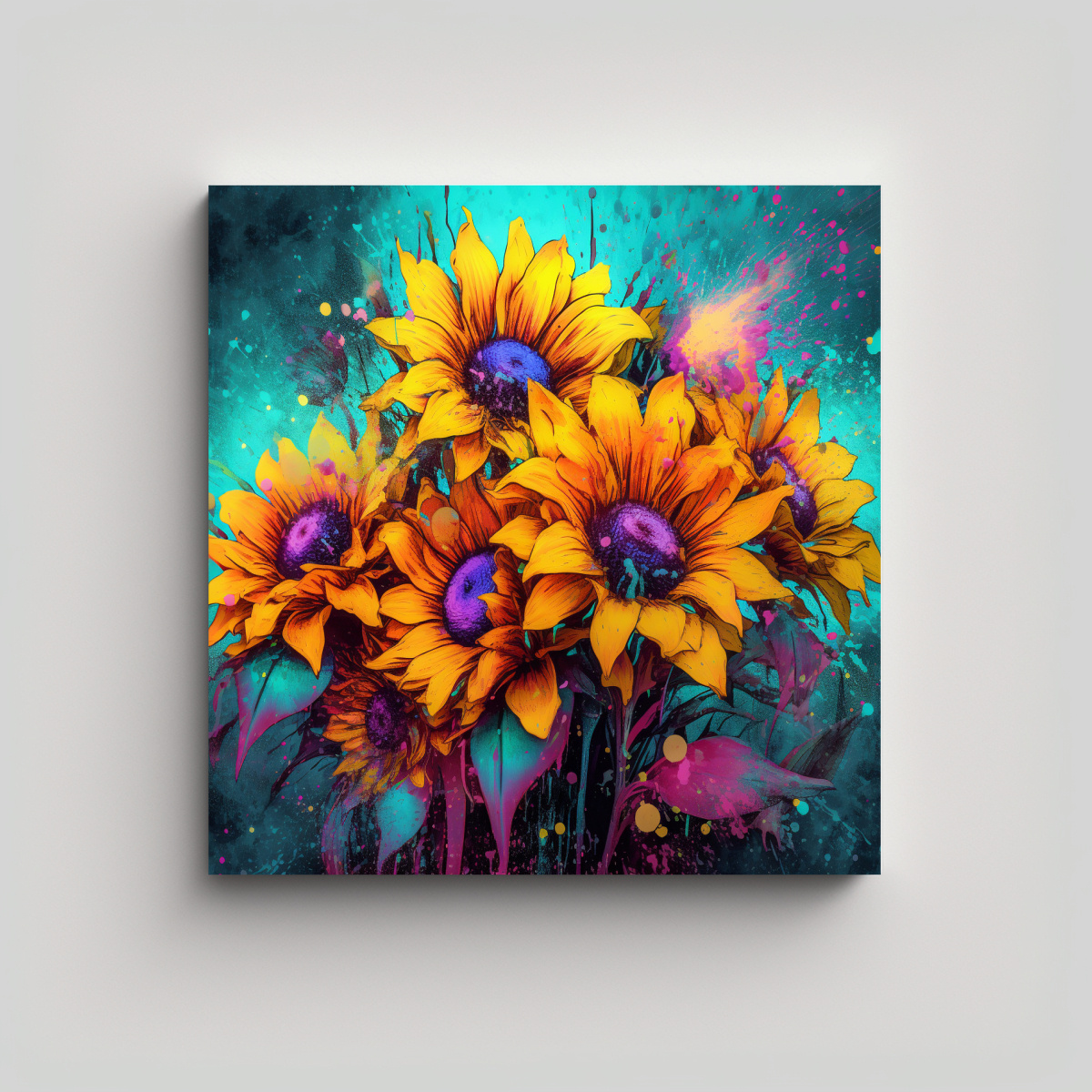 Cuadro De Girasoles Amarillos Con Fino Arte De Pared En Salpicadura Colorida