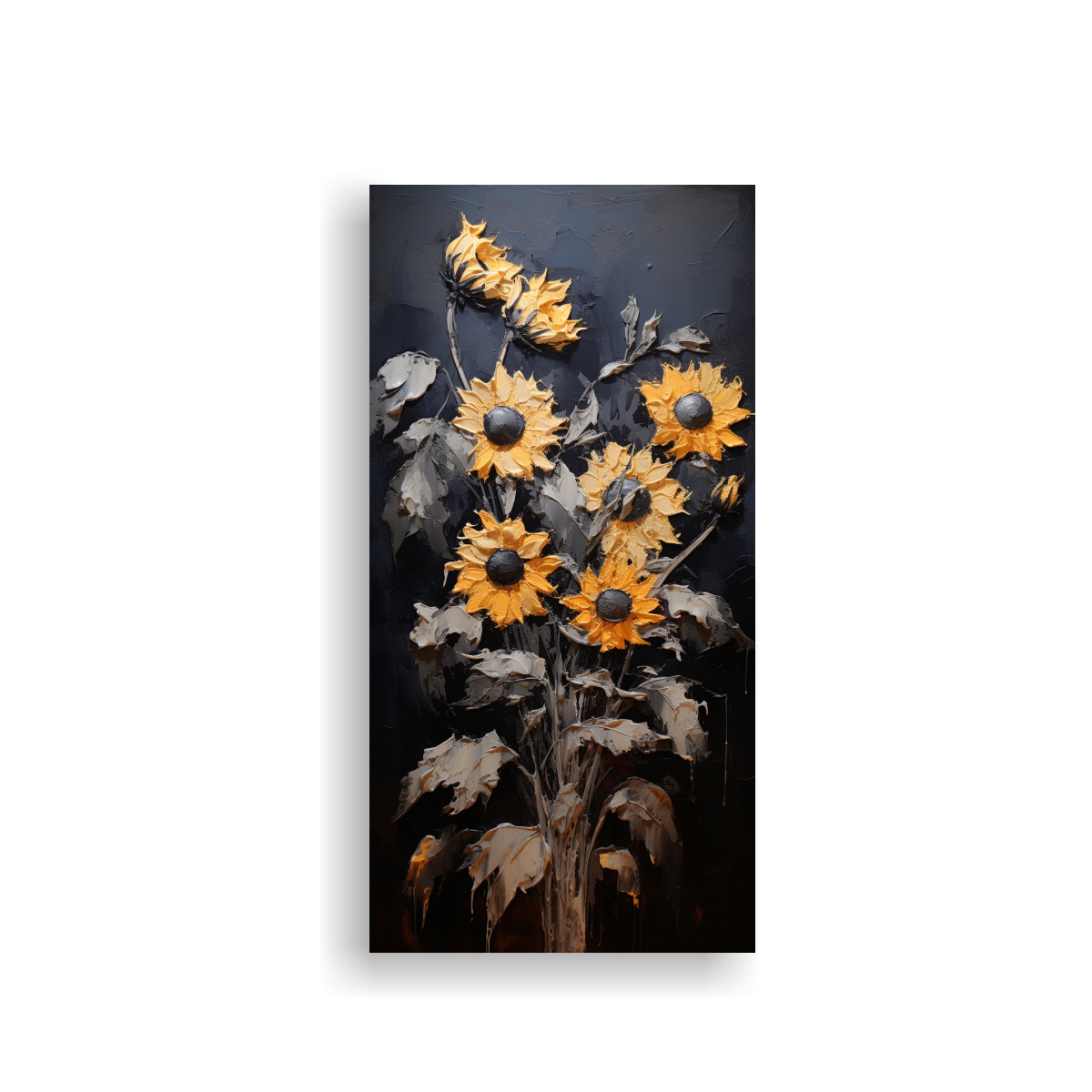 Este cuadro de girasoles negros en lienzo sería perfecto para decorar una sala de estar moderna Puedes colocarlo sobre un sofá de color neutro para crear un contraste llamativo Además, combinará muy bien con muebles y accesorios en tonos dorados y plateados, creando un ambiente sofisticado y elegante