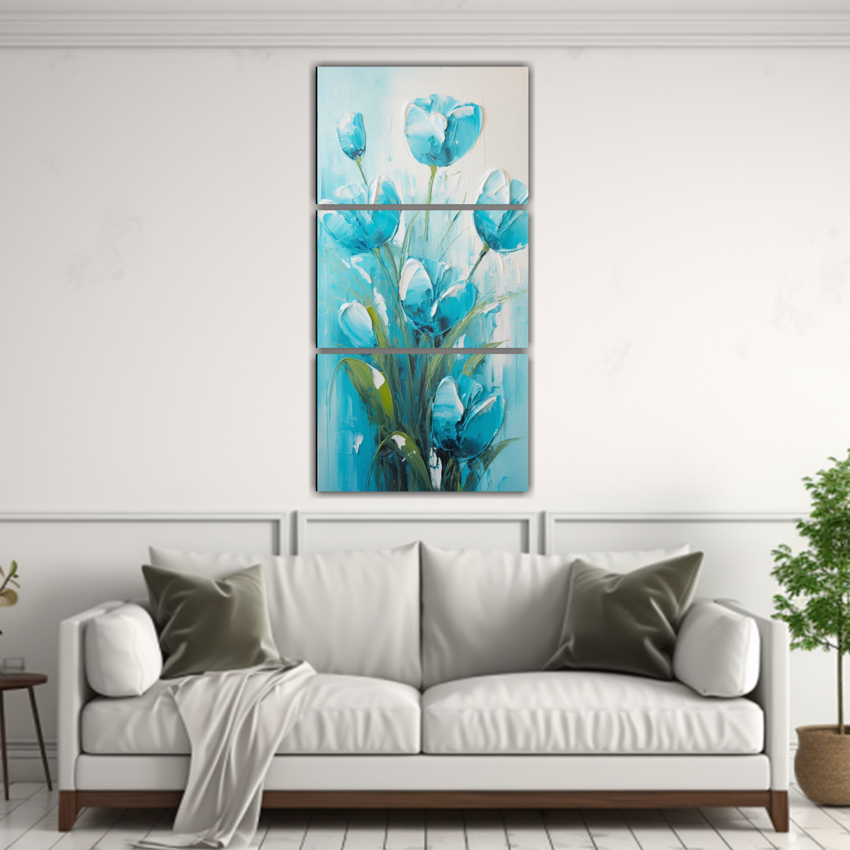 Cuadro De Hermoso Bonito: Pintura De Tulipanes Turquesa En Lienzo Con Estilo.