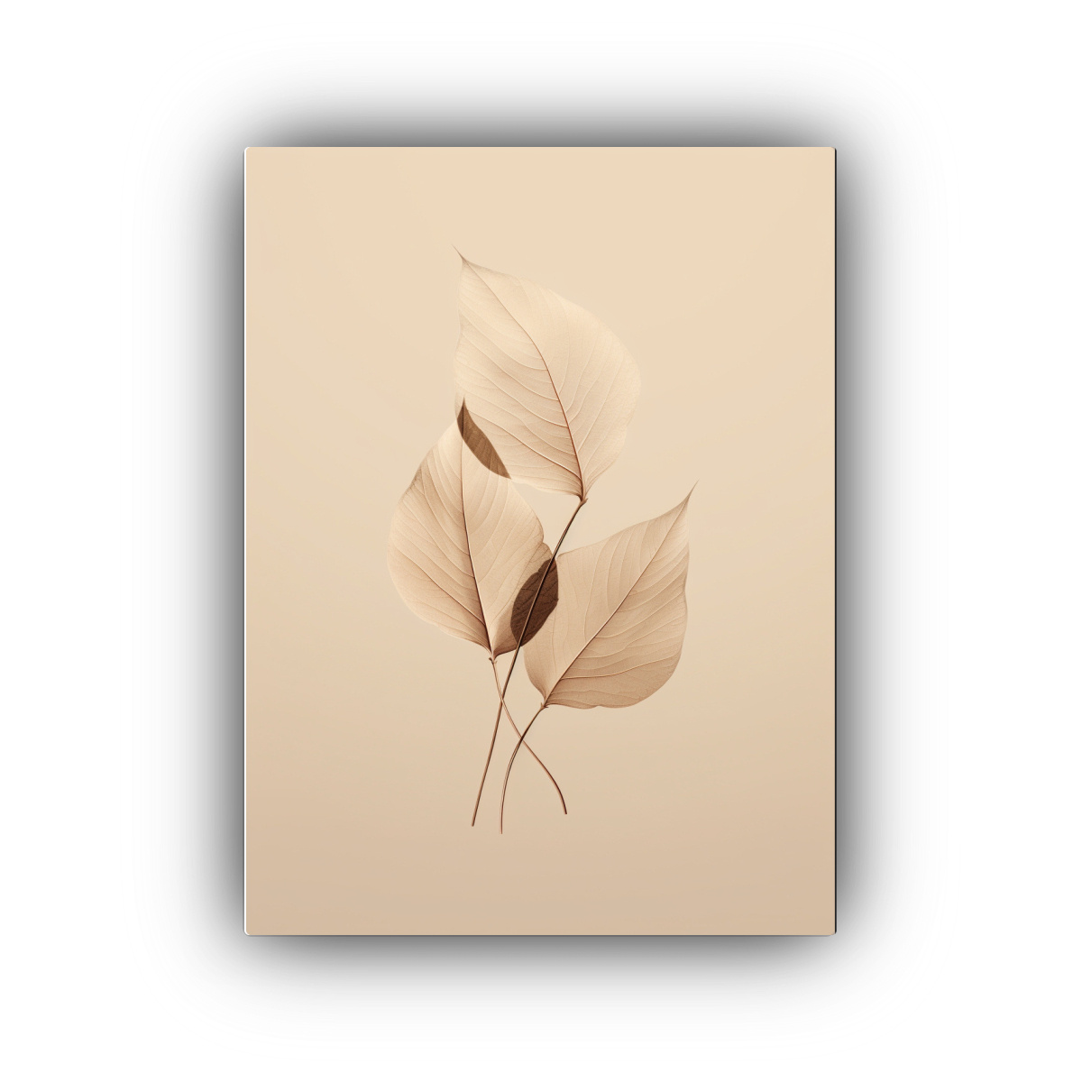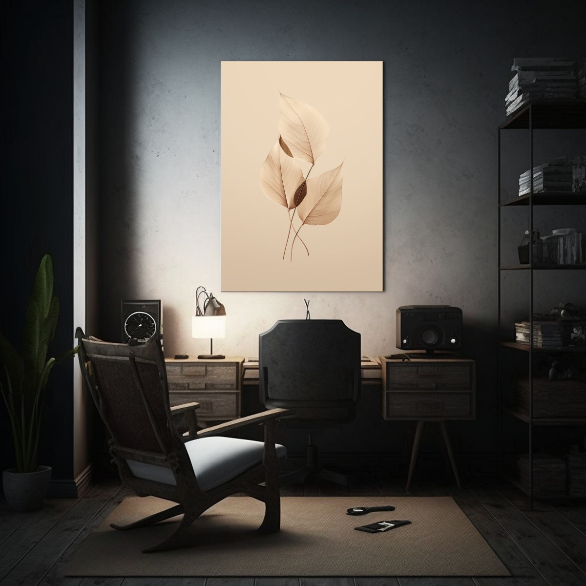 Cuadro De Hojas En Fondo Beige Estilo Decorativo