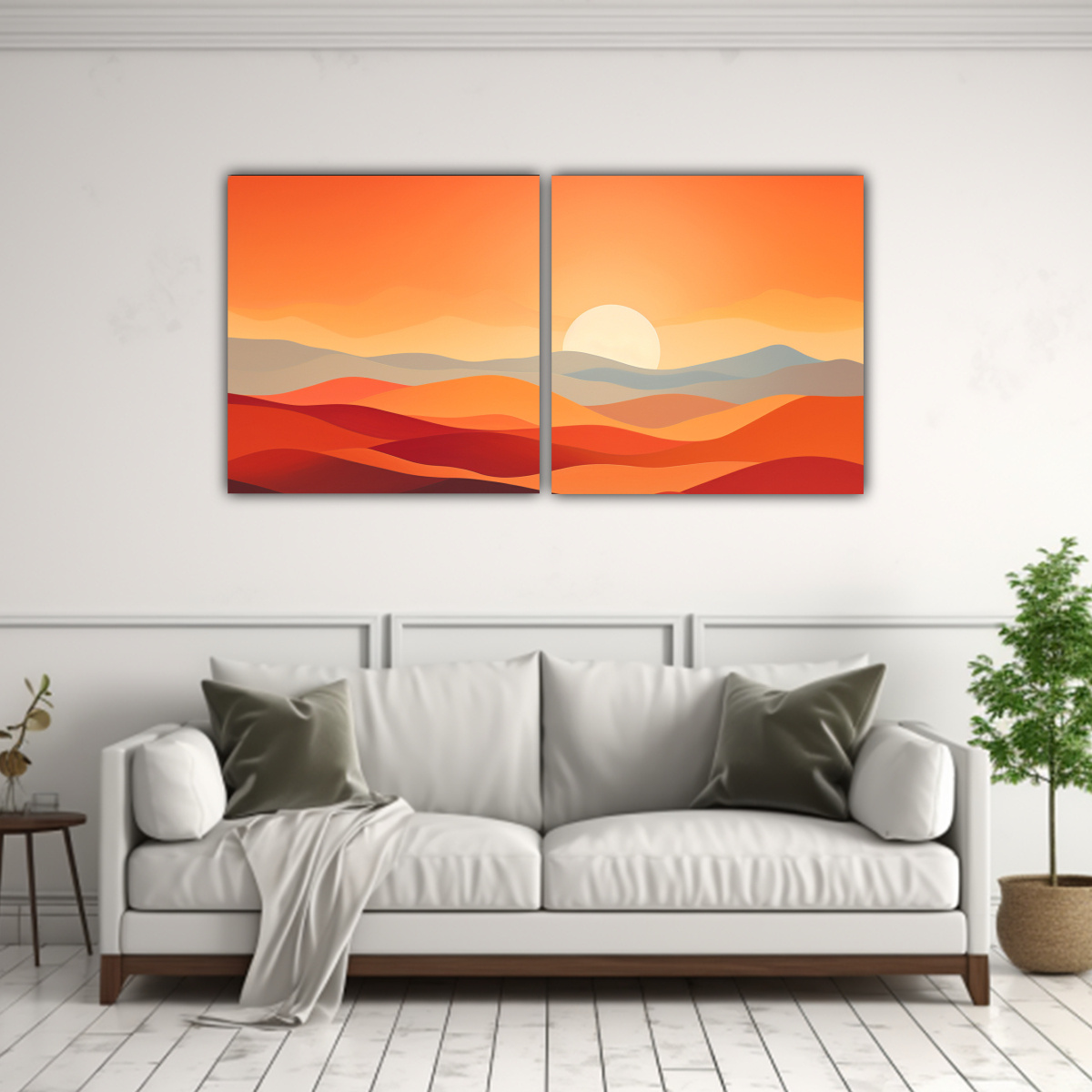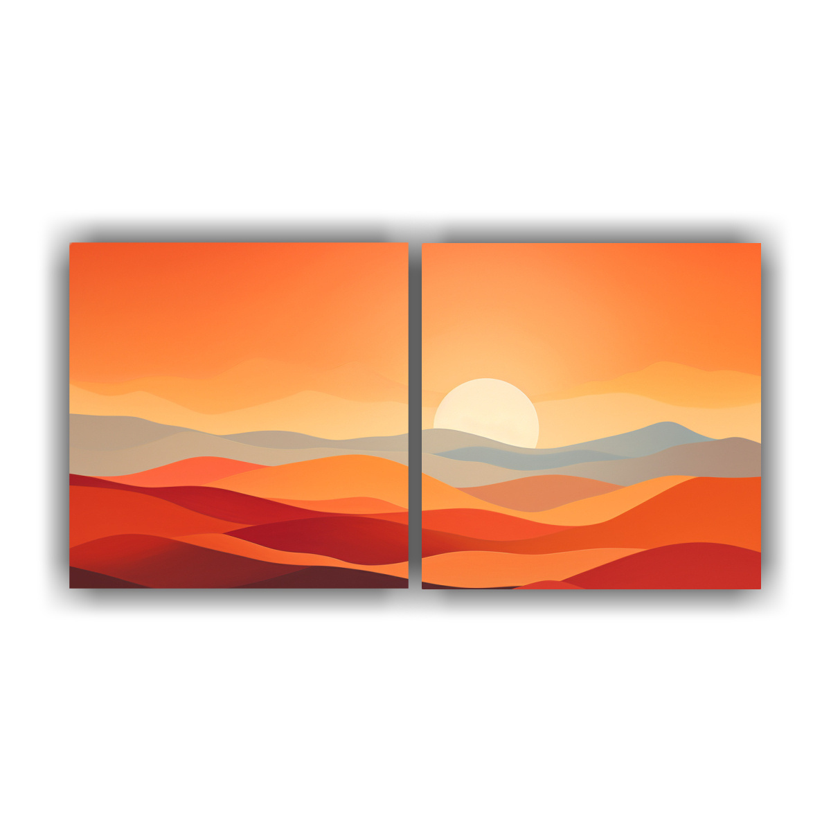 Cuadro De Interplay De Tonos Fríos Y Cálidos, Sensibilidad Artística En Dos Lienzos De Tela.