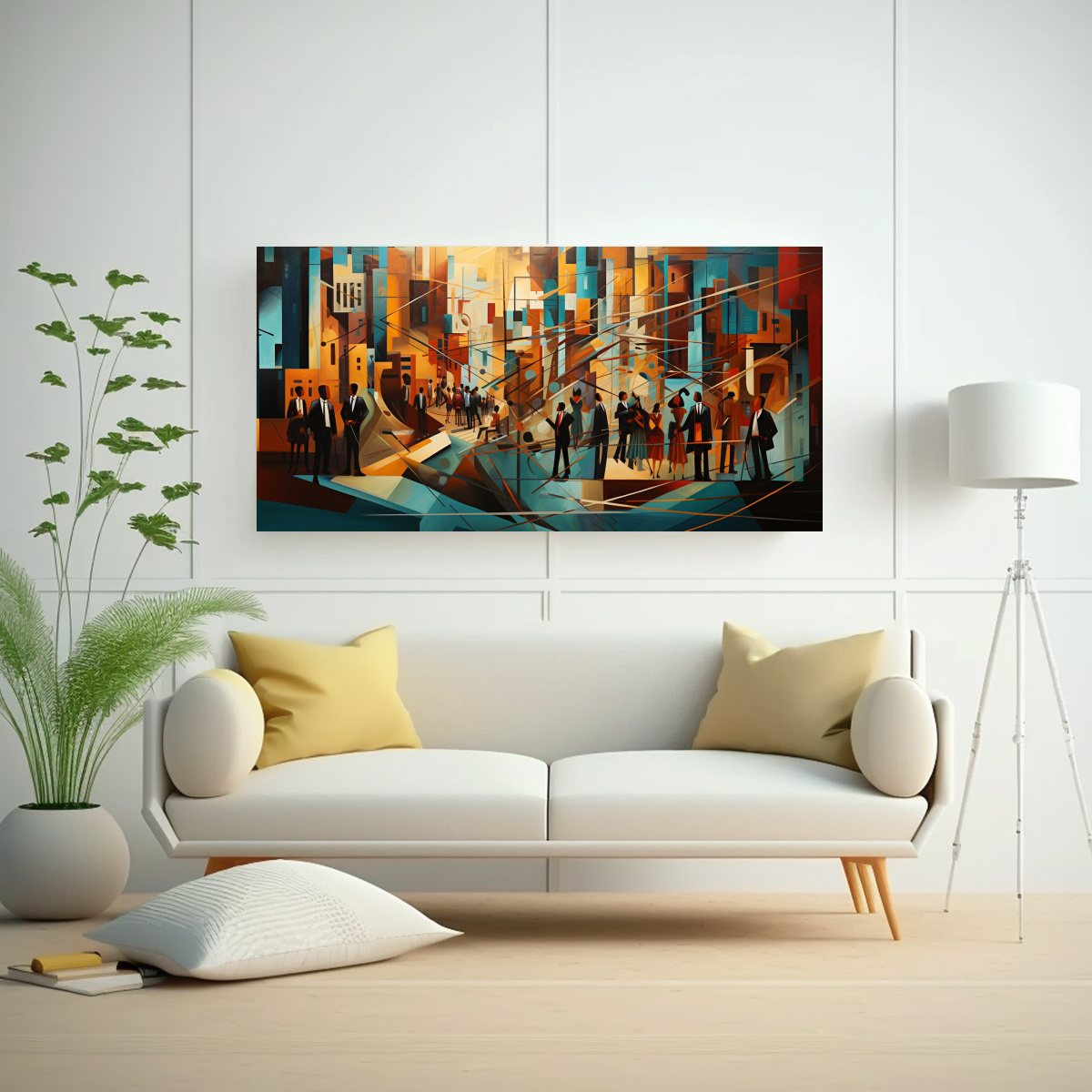 DecoCuadros ofrece cuadros decorativos impresos en tela de alta calidad con bastidores de madera Nuestro cuadro abstracto representa el ajetreo urbano en colores vibrantes como coral, turquesa y negro Con diseños exclusivos y precios competitivos, somos la mejor opción para decorar tu espacio