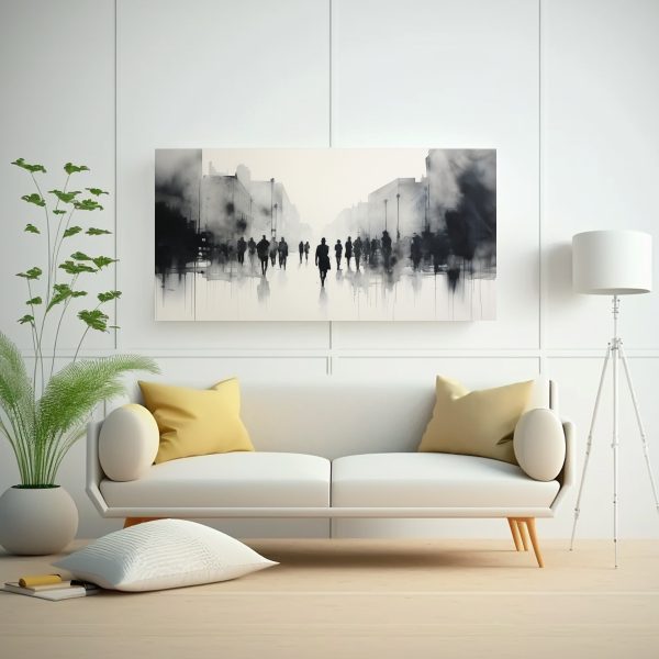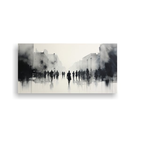 Cuadro De Lienzo Brillante De Dibujo En Tinta De Personas Caminando En La Ciudad