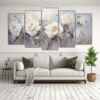 Este cuadro de rosas blancas en estilo políptico será el complemento perfecto para tu sala de estar o dormitorio Colócalo sobre un sofá gris claro para darle un toque de elegancia y sofisticación a tu espacio Combínalo con cojines en tonos plateados y azules para crear una armonía de colores ¡Atrévete a darle un toque floral a tu hogar con este cuadro exclusivo de DecoCuadros!
