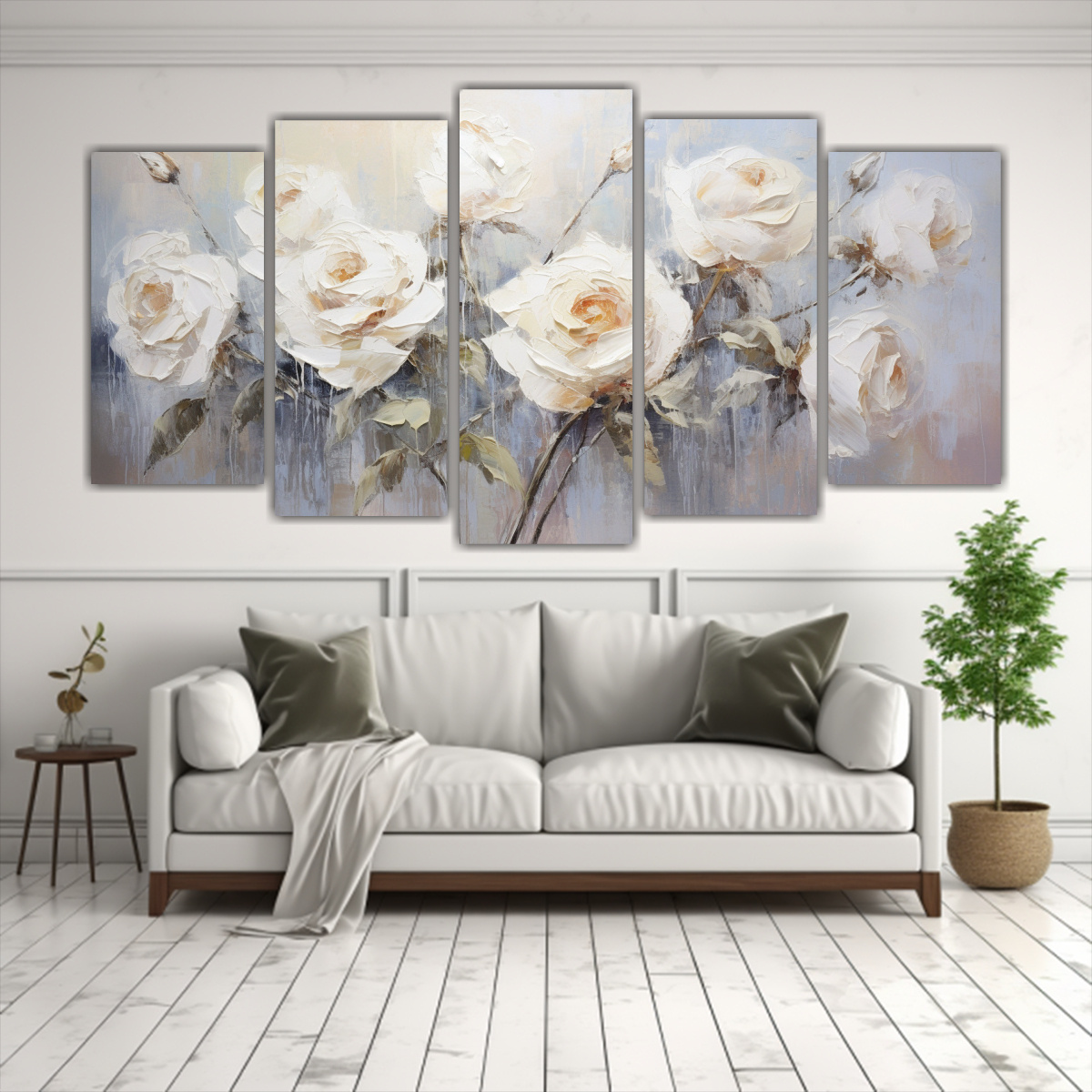 Cuadro De Lienzo Con Diseño Duradero De Rosas Blancas En El Estilo De Poliptico