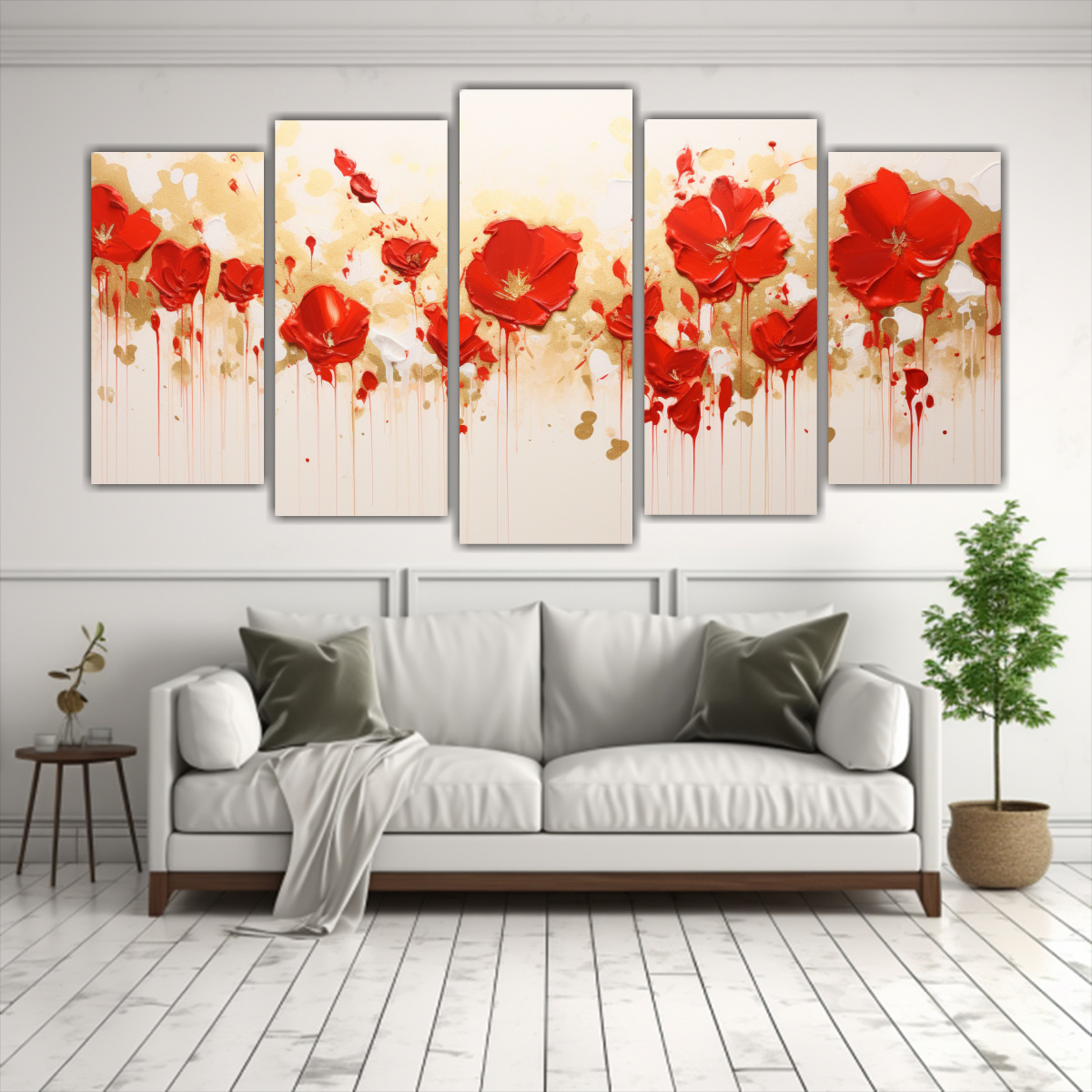 DecoCuadros te presenta el set 5 Canvas acuarela Impresionante, una pintura en acrílico derramada sobre un fondo blanco Con una combinación de colores que incluyen beige, carmesí, coral, plateado, amarillo claro, marrón y gris, este cuadro aportará elegancia y estilo a cualquier ambiente Nuestros cuadros están impresos en tela de alta calidad con bastidores de madera, lo que garantiza durabilidad y resistencia ¡No te pierdas nuestros diseños exclusivos!