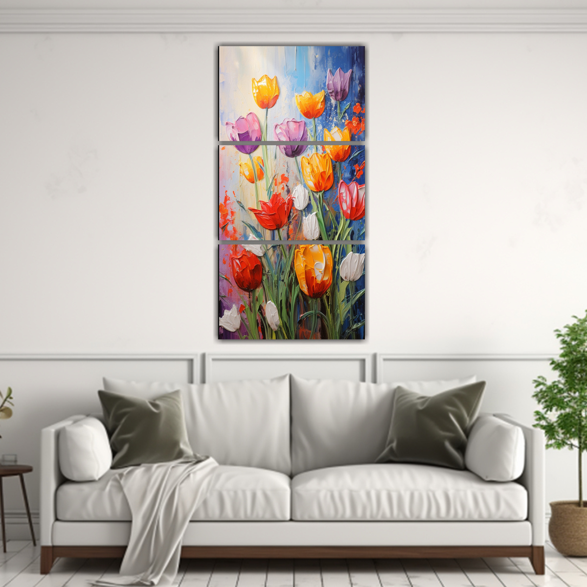 El cuadro de lienzo de Tulipanes con colores vibrantes y simplicidad es perfecto para darle vida a cualquier espacio Con colores como el plateado, mostaza, azul marino grisáceo, carmesí, gris, coral, verde azulado, lila y menta, este cuadro es una obra de arte que aportará elegancia y frescura a tu hogar Confeccionado con materiales de alta calidad y diseños exclusivos de nuestra tienda, garantizamos la satisfacción de nuestros clientes