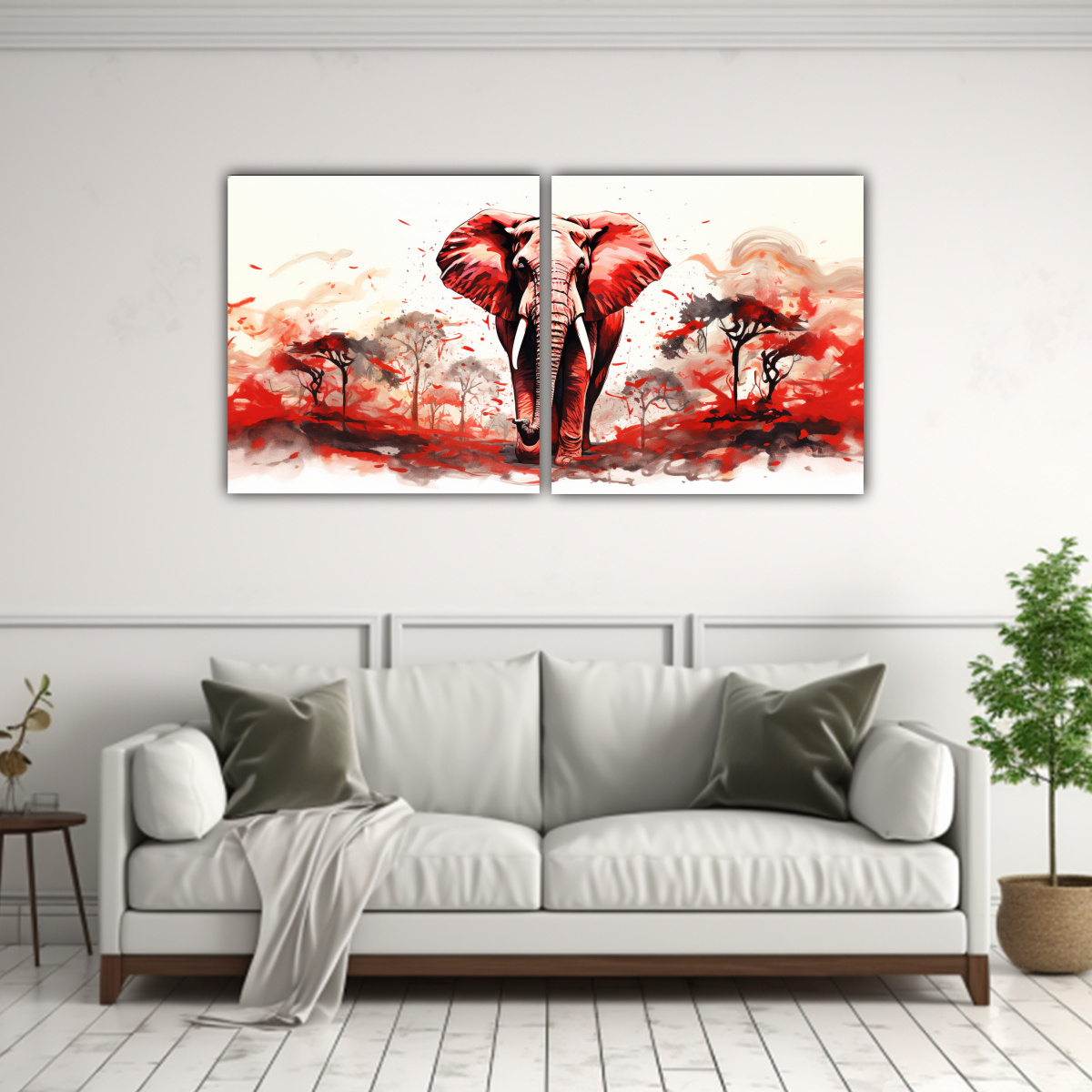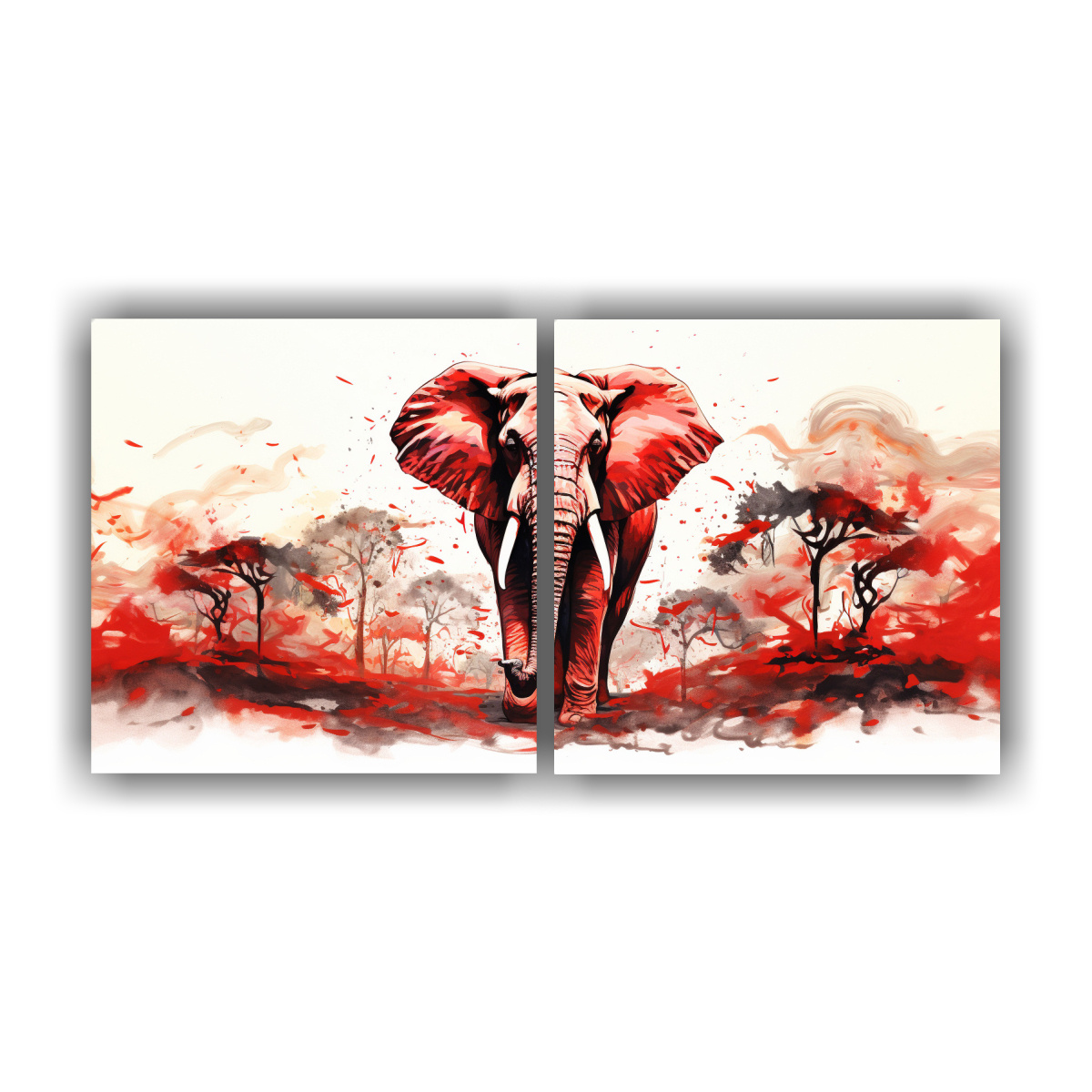 Coloca este hermoso cuadro de elefante en acuarela y colores rojos en la sabana en tu sala de estar para darle un toque exótico y elegante Combínalo con muebles en tonos neutros y detalles en rojo para crear un ambiente armonioso y sofisticado