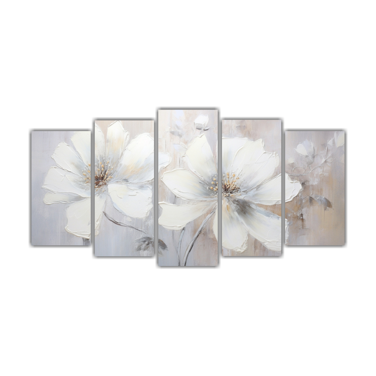DecoCuadros ofrece cuadros decorativos impresos en tela de alta calidad con bastidores de madera Nuestro cuadro de lienzo estilo galería presenta una pintura de flor blanca que añadirá elegancia y estilo a cualquier ambiente Con colores plateados, beige y grises, este cuadro combina perfectamente con cualquier decoración Además, tenemos los precios más económicos del mercado y entregas rápidas y gratuitas en Santiago