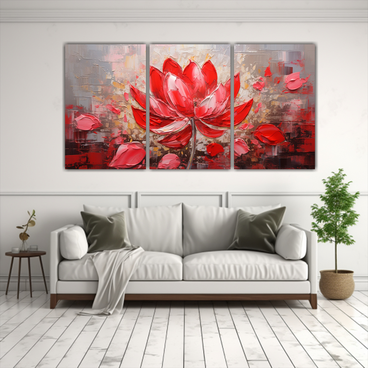 Cuadro De Lienzo Expresión De Naturaleza Viva Con Pintura De Loto Rojo En Estilo De Re