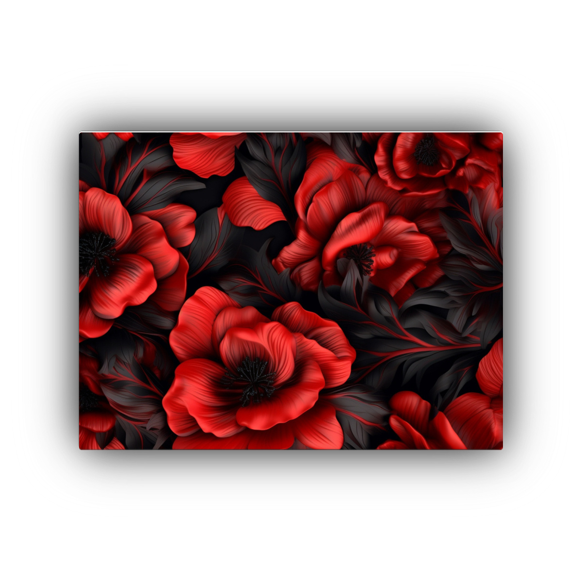 Cuadro De Lienzo Floral Rojo Y Negro 3D Para Decoración De Habitación