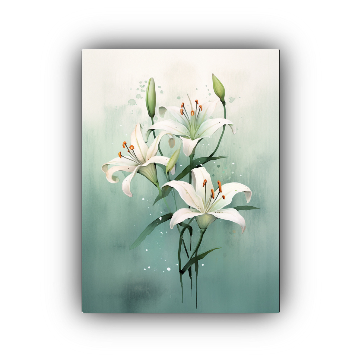 Cuadro Estilo Lienzo de Galería: Crea un aspecto 3D más realzado y moderno Dos veces más grueso que un lienzo fino Montado alrededor de un marco de madera de pino de alta calidad Colgador ya colocado: listo para montar inmediatamente después de desembalar Imágenes y fotos de alta definición impresas con lienzo ecológico Aprovecha nuestra amplia variedad de diseños exclusivos para combinar con tu estilo personal y darle un toque único a tu hogar ¡Compra ahora y disfruta de la belleza de este cuadro de lirios en acuarela en tu hogar!