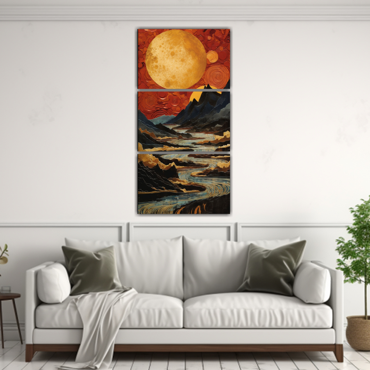 Coloca este cuadro de lona hermoso con una luna cerca de las montañas y estrellas en tu sala de estar para crear un ambiente relajante y mágico Combínalo con muebles en tonos neutros y accesorios dorados para resaltar su belleza