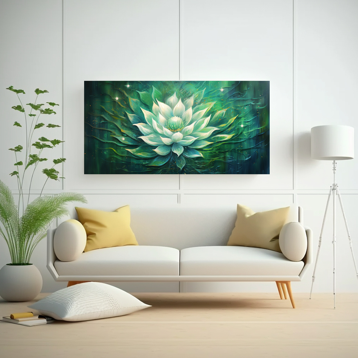 Este cuadro de loto verde en estilo de pintura Forma Espacio en lienzo sería perfecto para decorar tu sala de estar o dormitorio Combínalo con muebles en tonos neutros y detalles en dorado para crear un ambiente relajante y sofisticado