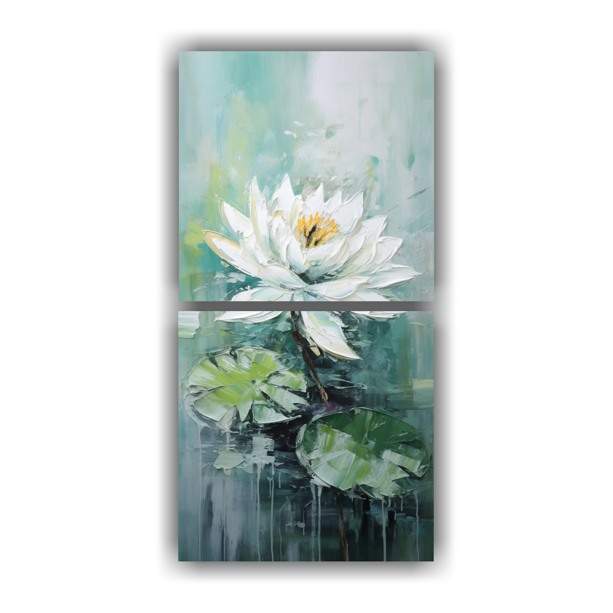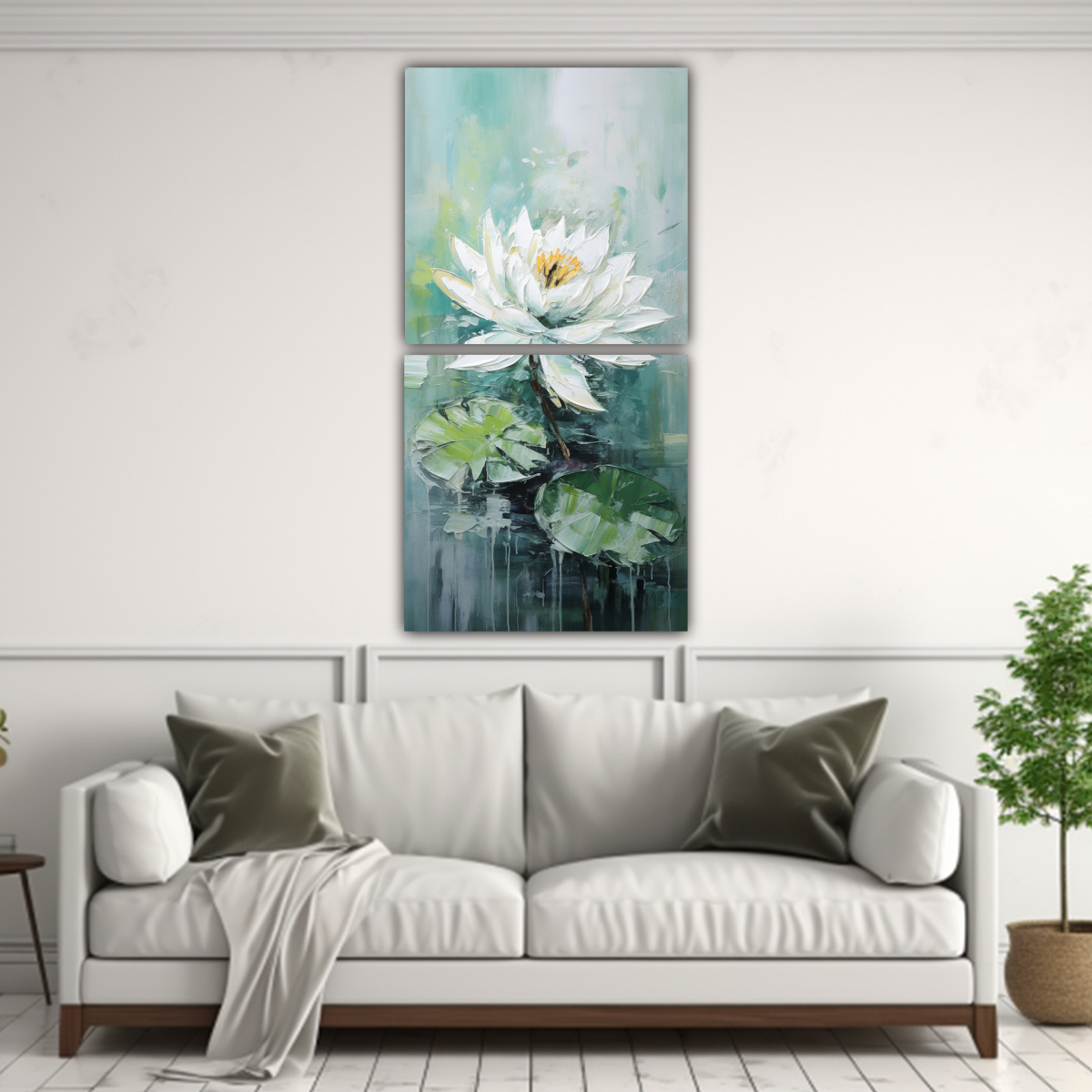 Cuadro De Loto Verde Estilo Composición En Lienzo