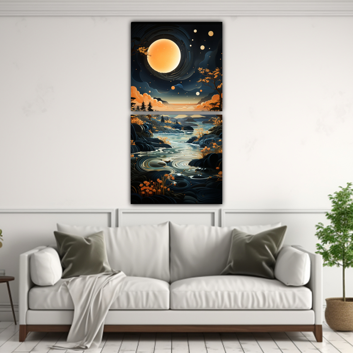 Cuadro De Montaña Con Luna: Arte De Pared Intenso Y Exuberante