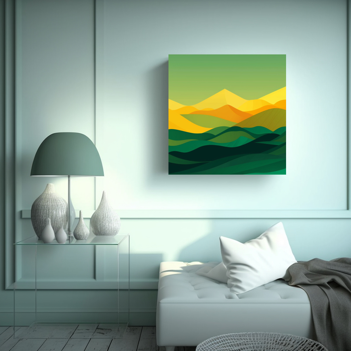 DecoCuadros tiene para ti el cuadro de montaña en relieve con formas gráficas simples de alta calidad Con colores como el azul marino grisáceo, verde, dorado, gris, chocolate y mostaza, nuestros cuadros impresos en tela con bastidores de madera son perfectos para darle un toque único a cualquier espacio