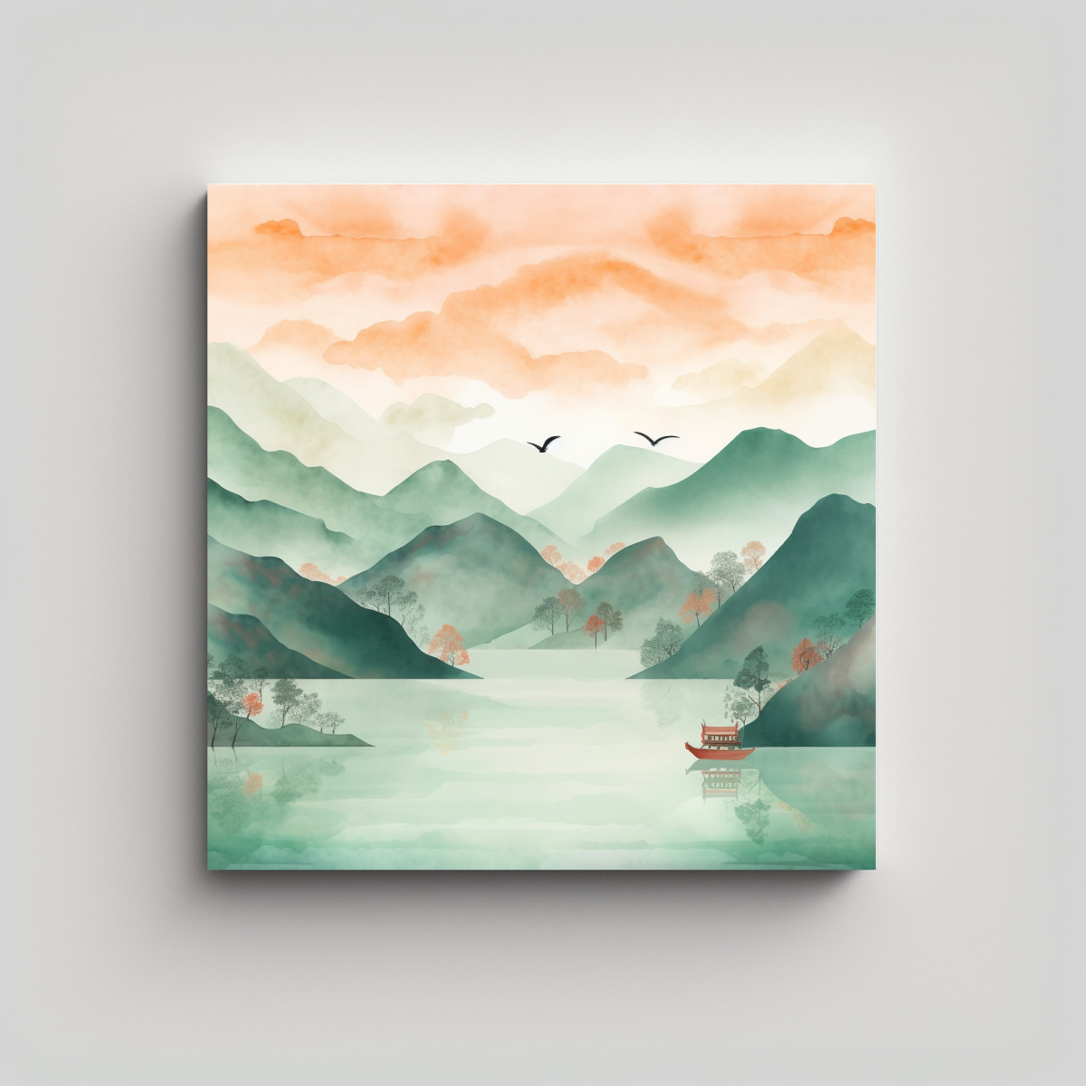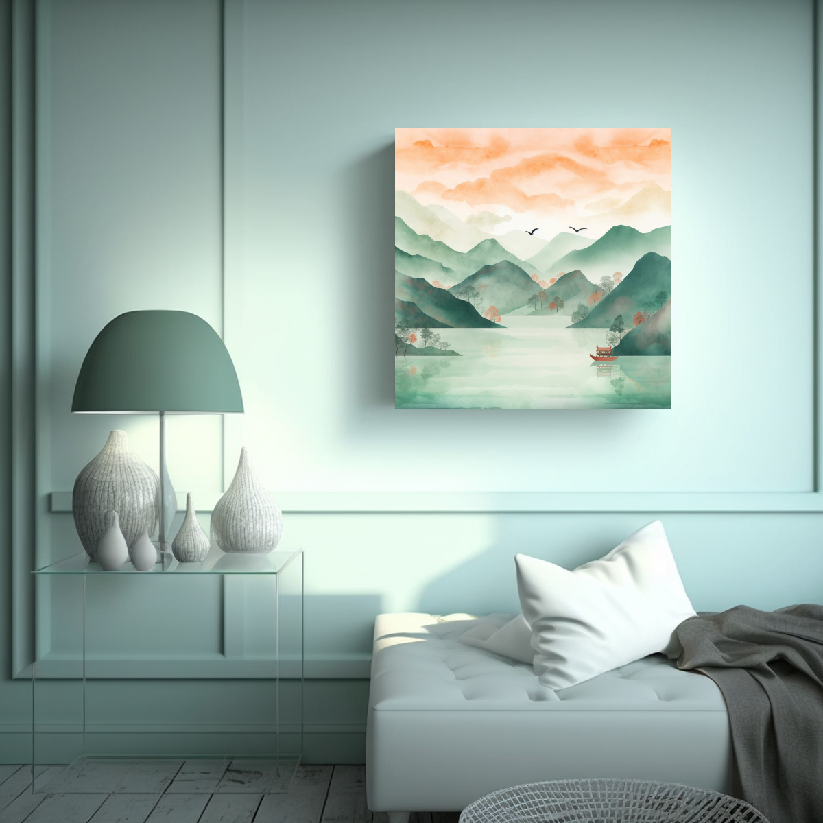 Cuadro De Montañas En Fondo Blanco Para Decoración De Interiores