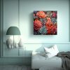Este cuadro de movimiento en tonos de coral, azul marino grisáceo, gris, carmesí, negro y plateado se vería espectacular en un salón moderno con una pared de color neutro Combínalo con muebles en tonos grises, plateados o blancos para crear una atmósfera elegante y sofisticada