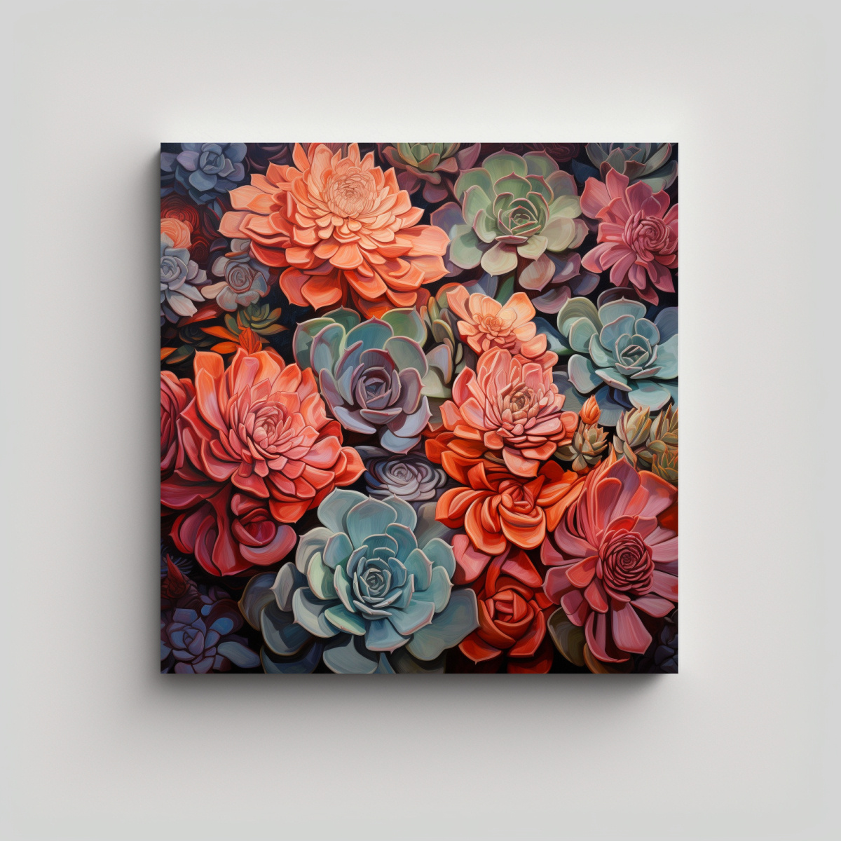 Cuadro De Movimiento En El Salón A, Pintura Abstracta De Suculentas Con óleo Detallado Alto