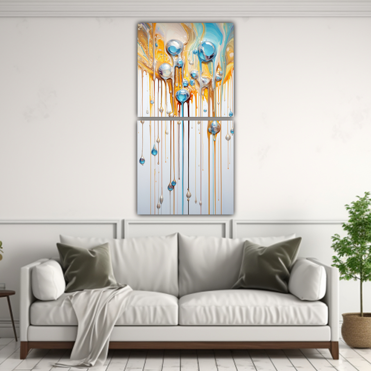 Coloca el cuadro de movimiento estético en colores arcoíris y dorados en Set 2 en tu sala de estar para crear un ambiente elegante y moderno Combínalo con decoraciones en tonos coral, beige, turquesa, chocolate, plateado, azul marino grisáceo y gris, como cojines, cortinas o alfombras Este cuadro se verá especialmente bien en una pared de color neutro para resaltar su belleza Atrévete a llevar la moda y el arte a tu hogar con este diseño exclusivo de DecoCuadros