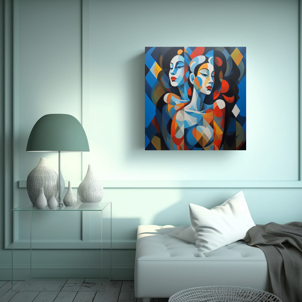DecoCuadros ofrece el cuadro ‘Cuadro de Mujeres y Escultura de Payaso en Frente’ con una composición dinámica e impactante Los colores Azul Marino grisaceo, Plateado, Verde Azulado, Turquesa, Carmesi, Coral y Gris se combinan magistralmente para crear una imagen que cautiva a la vista Con nuestra alta calidad y precios económicos, te garantizamos la mejor opción para decorar tus espacios Además, ofrecemos envío gratis en Santiago y envíos express a regiones
