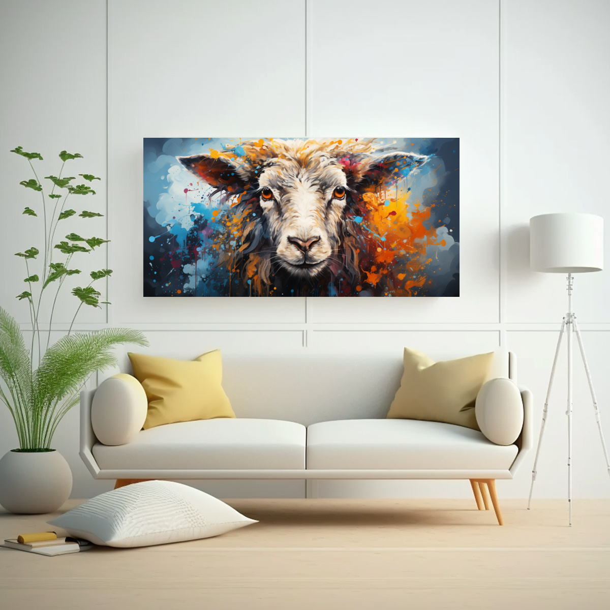 Cuadro De Oveja En Acuarela Colorida Arte De Pared