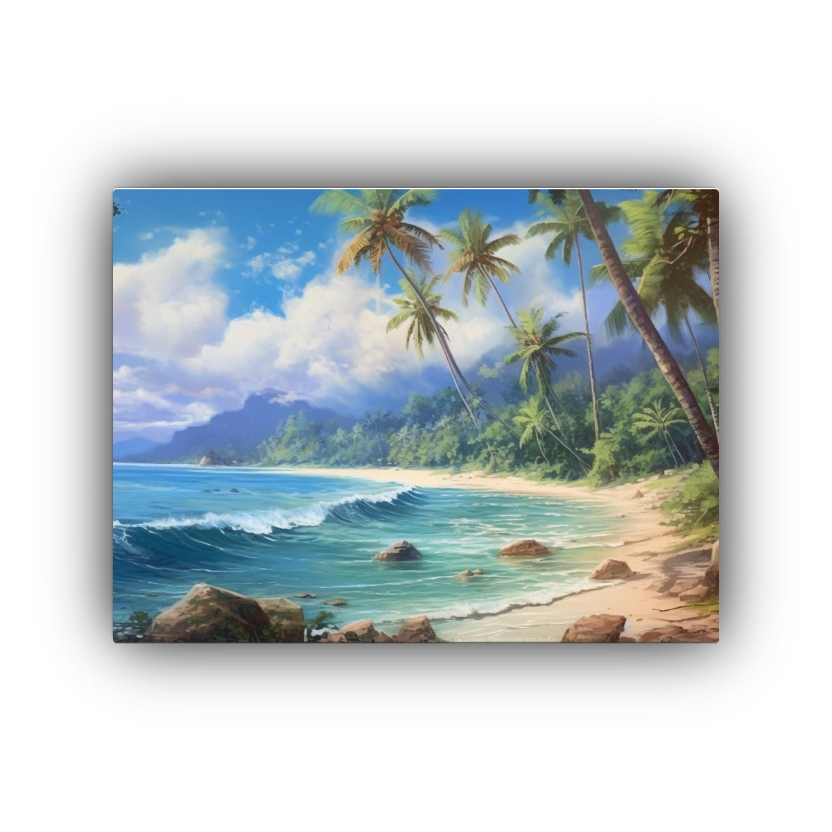 Coloca este cuadro en la pared principal de tu sala de estar para crear un punto focal impactante Combínalo con muebles en tonos neutros y accesorios en colores azules o verdes para lograr una decoración armoniosa y elegante ¡Transforma tu hogar en un oasis de tranquilidad con este cuadro tropical!