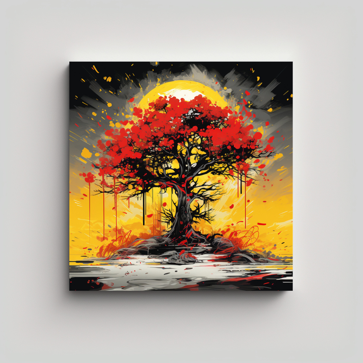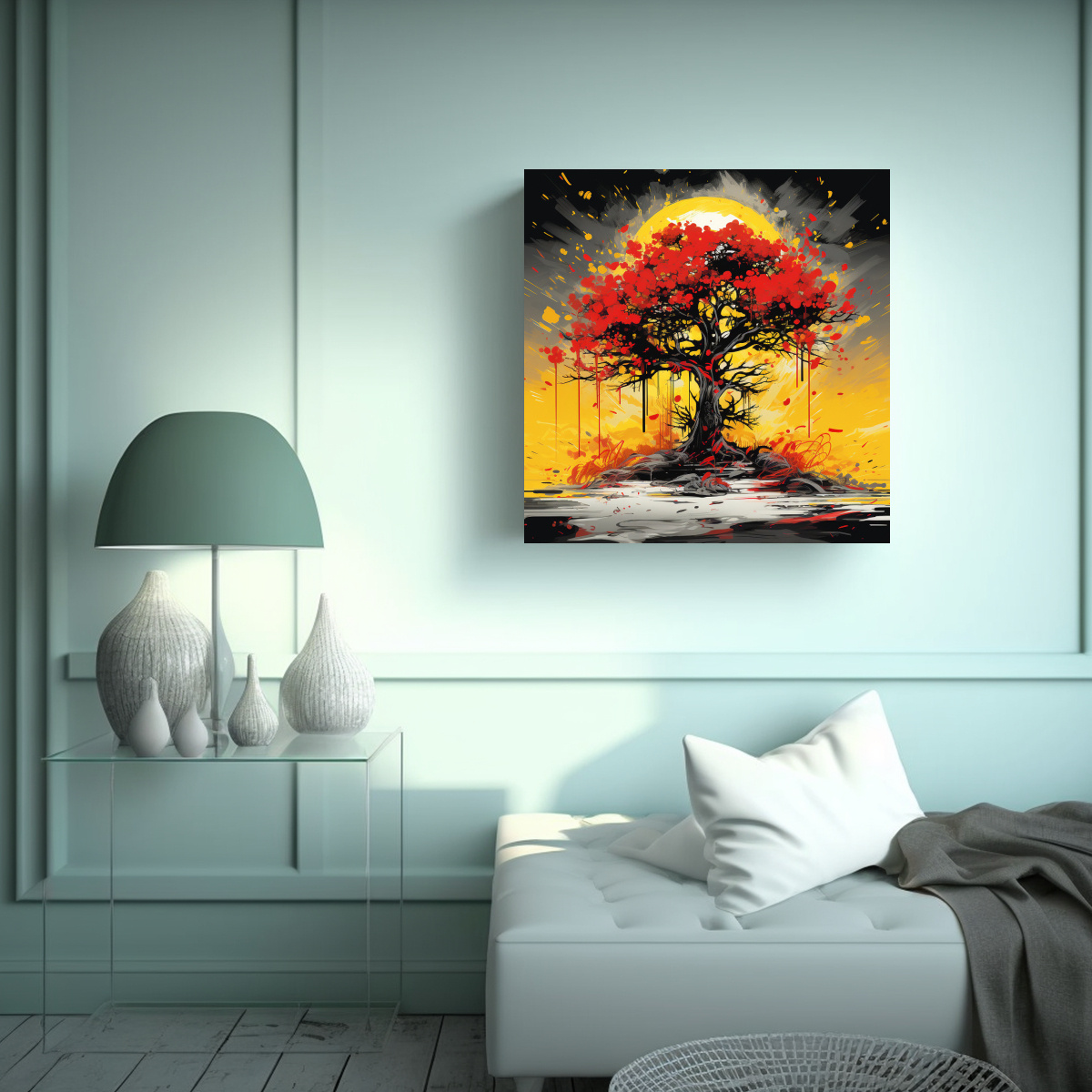 Cuadro De Pared Abstracción Mango Tree Amarillo Y Rojo Atmosfera Neonoir