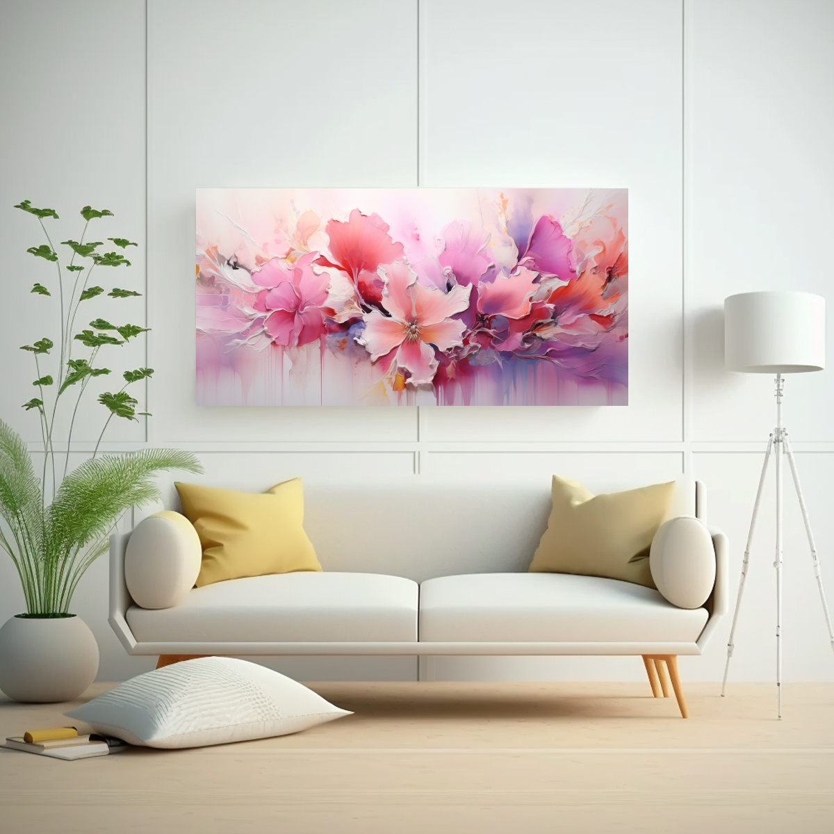 Este cuadro es ideal para decorar salas de estar o dormitorios Puedes colocarlo sobre un sofá o una cama para crear un punto focal en la habitación Combínalo con cojines y cortinas en tonos lila, carmesí y coral para un espacio armonioso y elegante