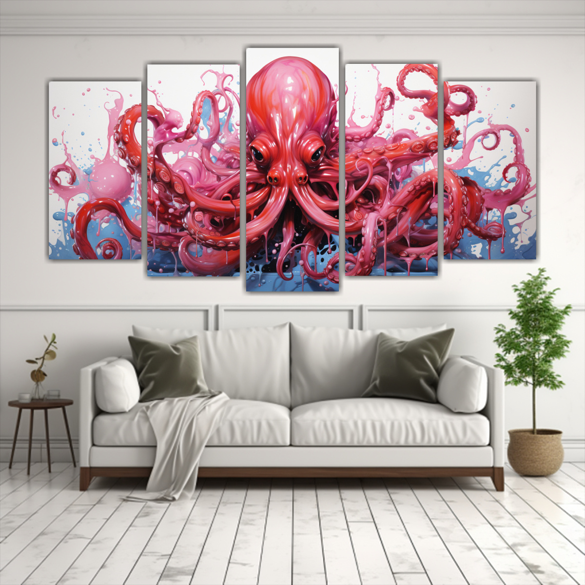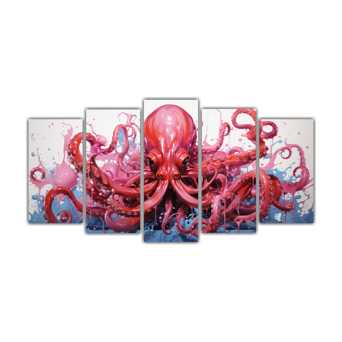 Renueva tu espacio con el Set 5 Artes de Pared Diseño Intensidad A Squid in Cherry AND Baby Pink Colors neo pop art en DecoCuadros Envíos rápidos y gratuitos en Santiago, y envíos express a regiones