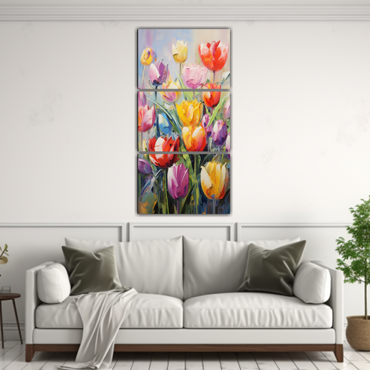 Este cuadro es perfecto para agregar un toque vibrante y colorido a cualquier espacio Puedes colocarlo en la sala de estar o en el comedor para crear un ambiente alegre y lleno de vida Combínalo con muebles en tonos neutros para que el cuadro resalte aún más ¡Atrévete a darle vida a tus paredes con este hermoso cuadro de tulipanes a colores!