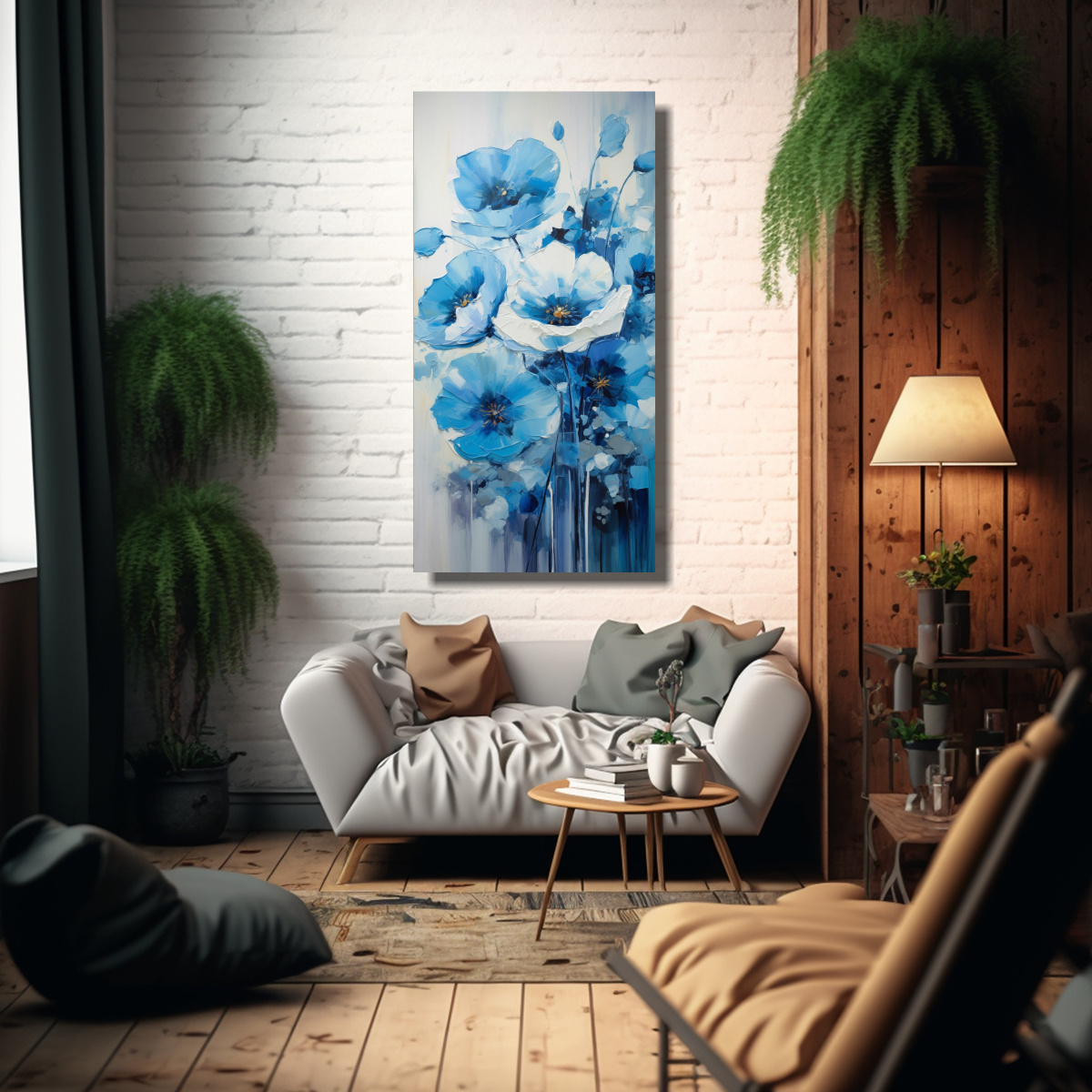 Este hermoso cuadro de acuarela en tonos azules y amapolas será perfecto para decorar tu sala de estar Colócalo sobre un sofá gris o azul marino para crear una combinación armoniosa y añadir un toque de color a tu espacio ¡Será el centro de atención de tus invitados!