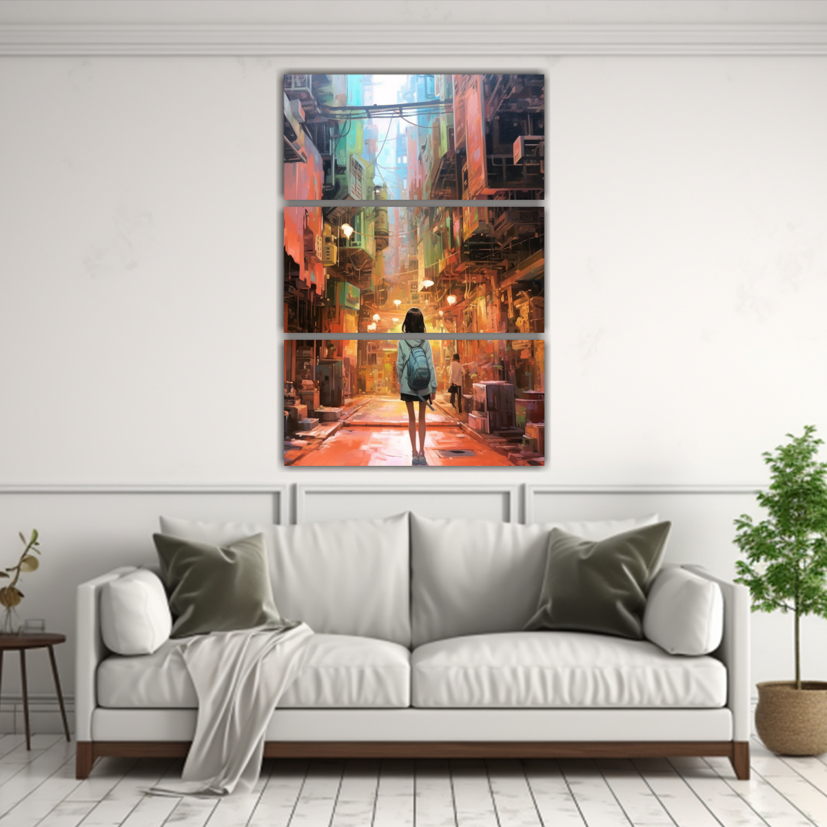 DecoCuadros ofrece cuadros de alta calidad impresos en tela con bastidores de madera El cuadro ‘Expresividad de una niña en un callejón con tiendas cercanas’ es perfecto para añadir un toque de expresividad a tus espacios