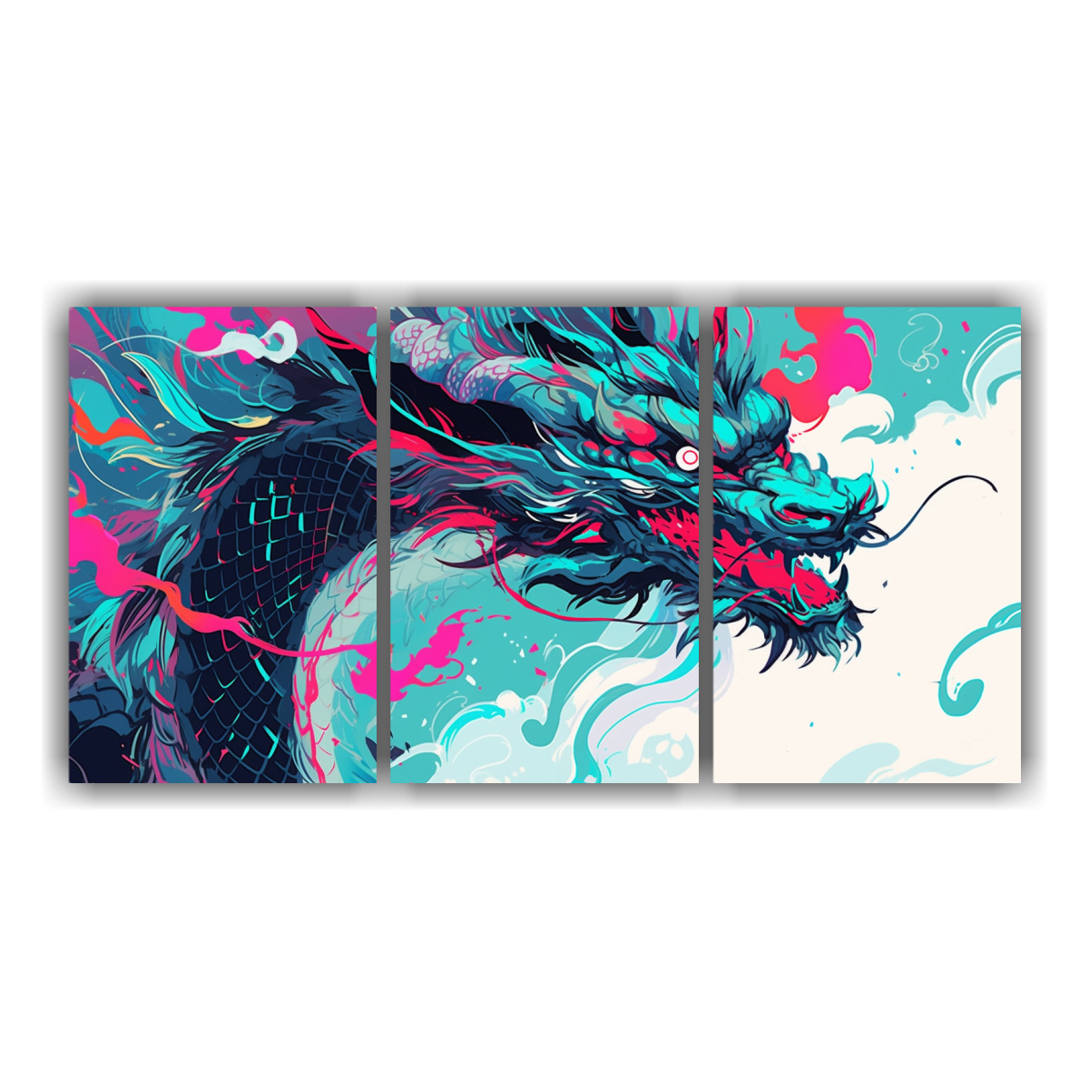 Cuadro De Pared Dragón En Tonos Pastel Y Turquesa Estilo Neonoir