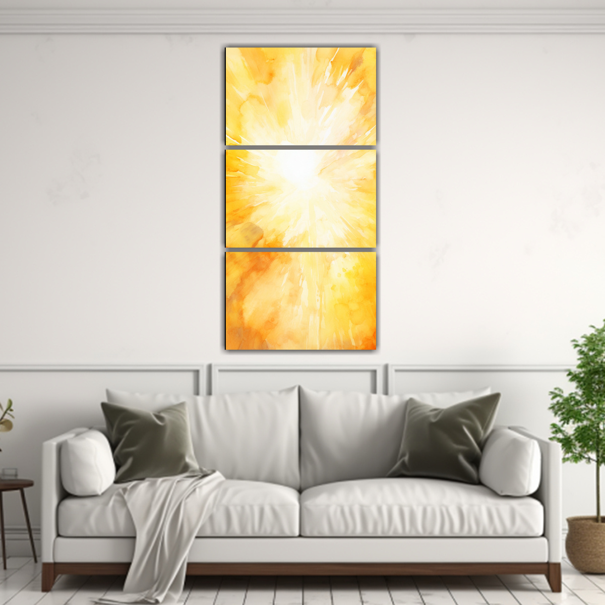 Cuadro De Pared Exclusivo Estilo Acuarelas Rayos De Sol Sobre Fondo Blanco, Tres Artes Calidos