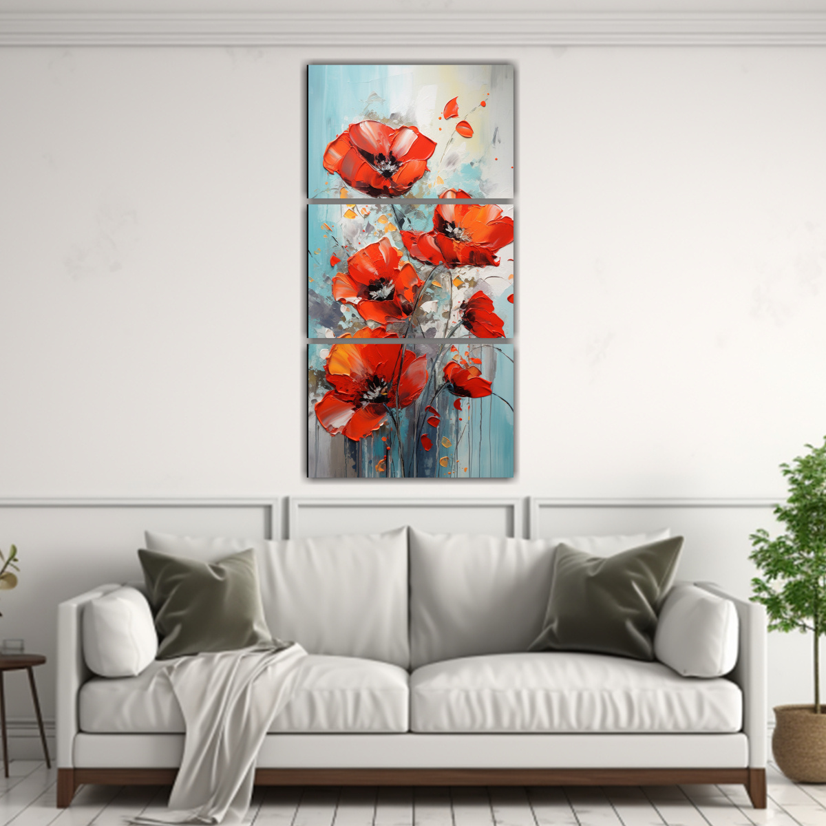 Para realzar la belleza del Cuadro de Pared Moderno Juvenil con Amapolas en Colores Vibrantes, te recomendamos colocarlo en una pared de tonos neutros para que resalten los colores vivos de la obra Combínalo con muebles en tonos claros para crear un contraste armonioso y moderno