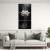 Este cuadro de loto negro en lienzo se vería ideal en tu sala de estar sobre un sofá de color claro, creando un contraste sofisticado y moderno Complementa la decoración con cojines plateados y grises para un ambiente elegante