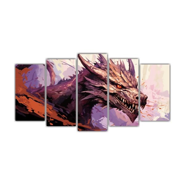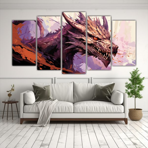 Agrega un toque Neo-noir con este cuadro de dragón en tonos marrón y púrpura Los colores beige, negro, gris, carmesí, lila, coral, morado y azul marino grisáceo se combinan para crear una atmósfera única Calidad excepcional a precios accesibles