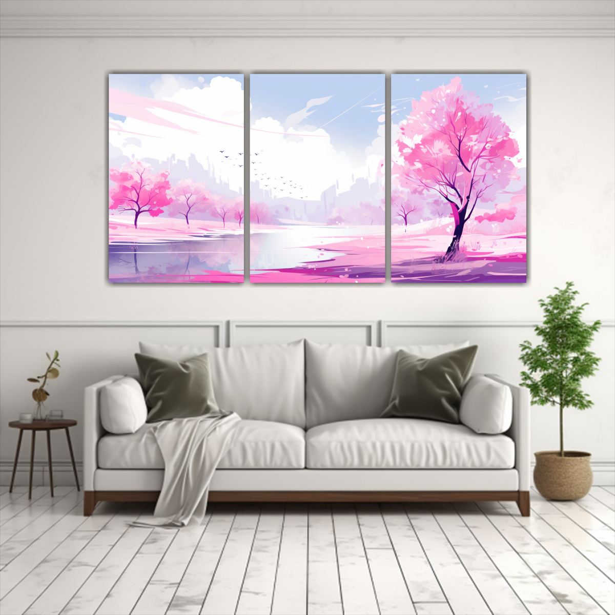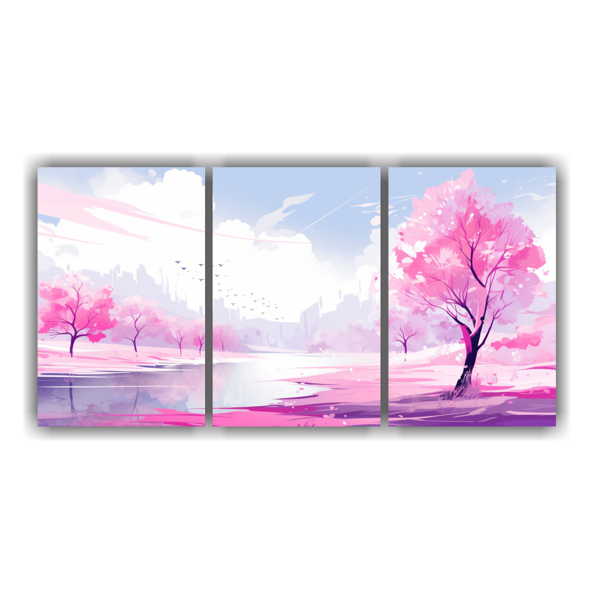Este cuadro de pared primaveral con colores rosados se vería espectacular en la sala de estar, sobre un sofá grisáceo o lila, creando un contraste armonioso y aportando un aire moderno y vibrante a tu espacio ¡Atrévete a darle vida a tus paredes!
