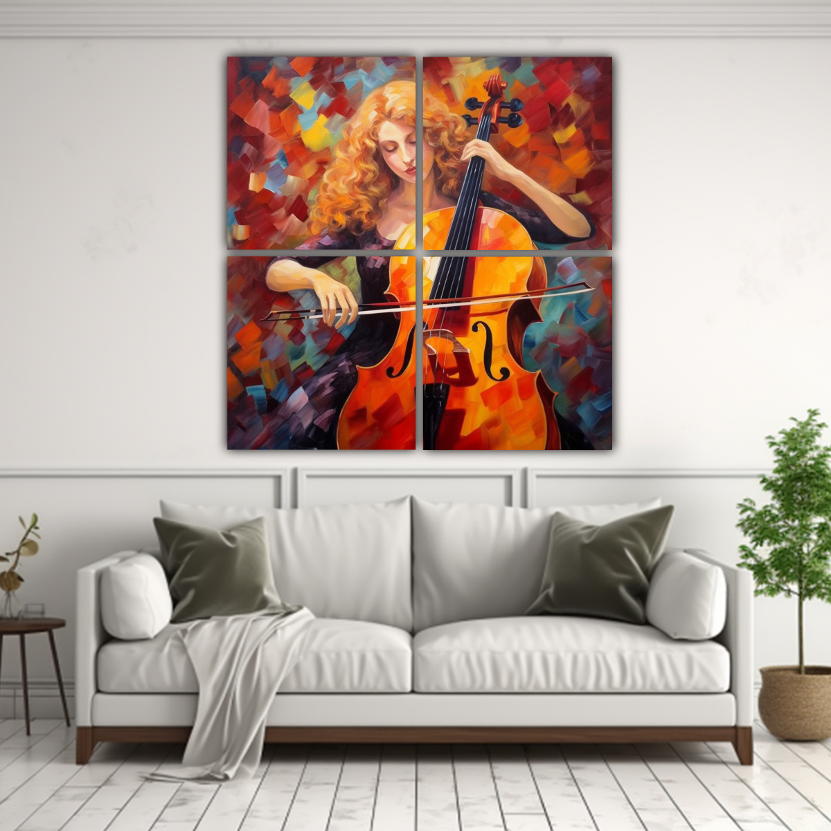 Este cuadro sería ideal para decorar tu sala de estar o tu estudio de música Colócalo sobre un sofá de tonos neutros, como el gris o el beige, para resaltar los colores vivos de la imagen Combínalo con cortinas o cojines en tonos similares y añade algunos detalles dorados para darle un toque de elegancia Con este cuadro, crearás un ambiente acogedor y sofisticado a la vez